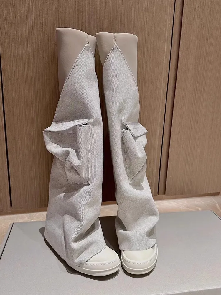 Split Pants Boots Fried Street Boots Canvas Goddess Pocket Boots Over-the-knee Boots