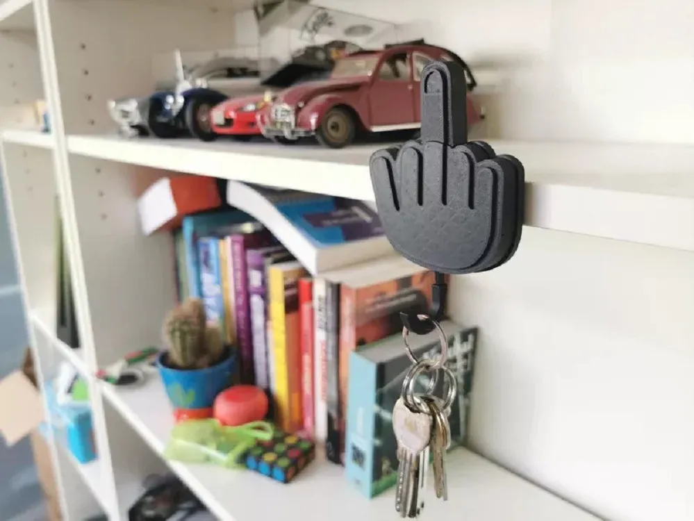 - Design: Middle finger gesture with a storage hook at the base for hanging keys or accessories