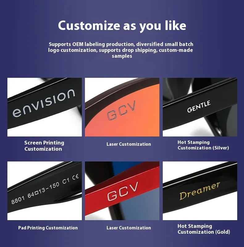 gray lens, gray frame pink and yellow, gray frame Green Blue