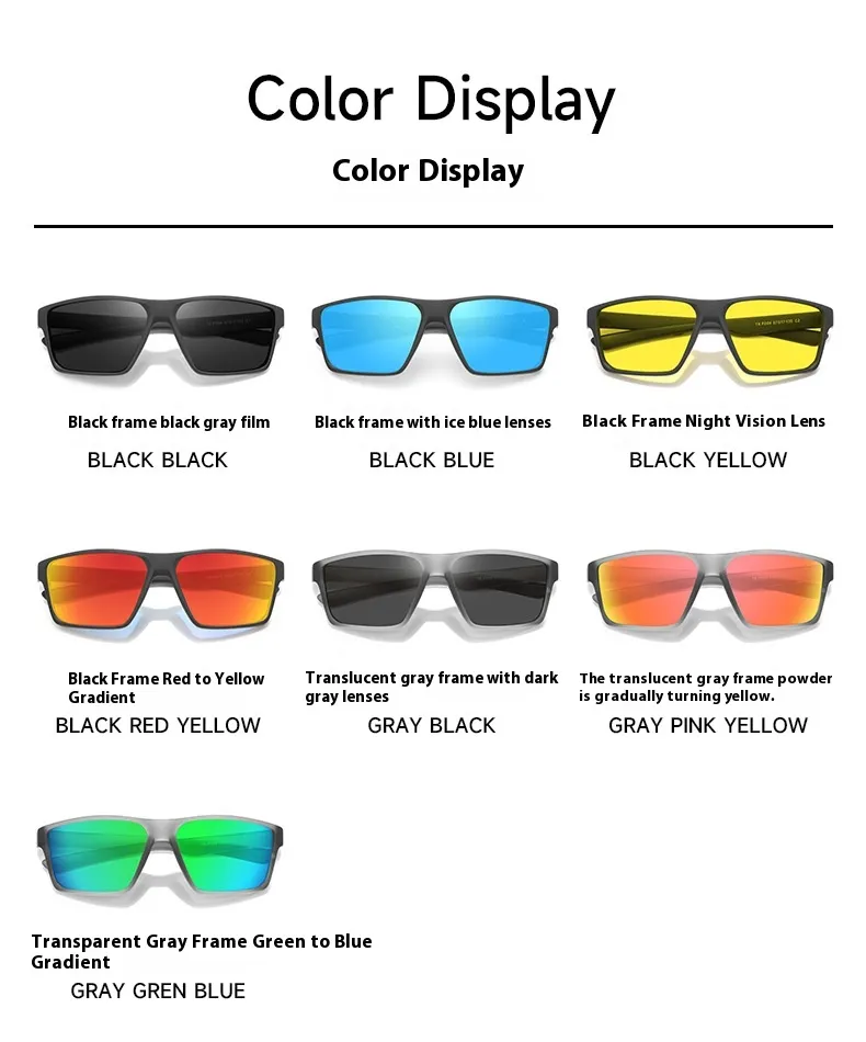 Color: Black frame Black gray lens, black frame ice blue film, black frame Night Vision film, black frame reddish yellow, gray frame Black