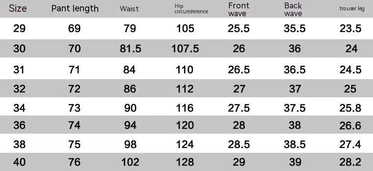 Size: 29, 30, 31, 32, 33, 34, 36, 38, 40, 42