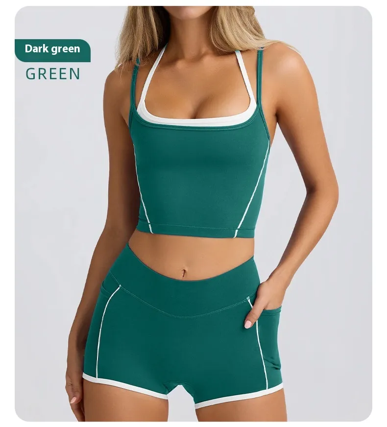 Sports Underwear Vest Shorts Spaghetti Strap Bra – High Elastic Fitness Top