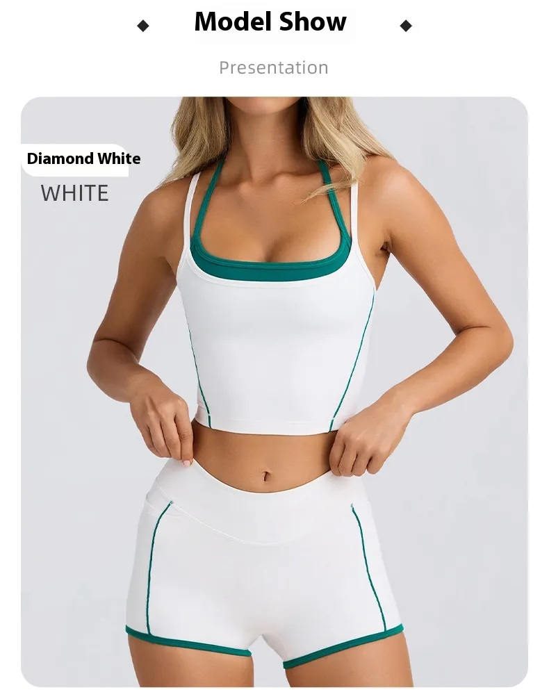 Made from high-elasticity, breathable fabric, this sports bra ensures a snug and comfortable fit that moves with your body. Its tight and supportive design helps maintain posture and reduce discomfort, while the moisture-wicking material keeps you cool and dry during exercise. The vest-style construction and shorts combination offer a streamlined, fashionable silhouette, making it versatile enough to wear alone or layered under activewear tops.
