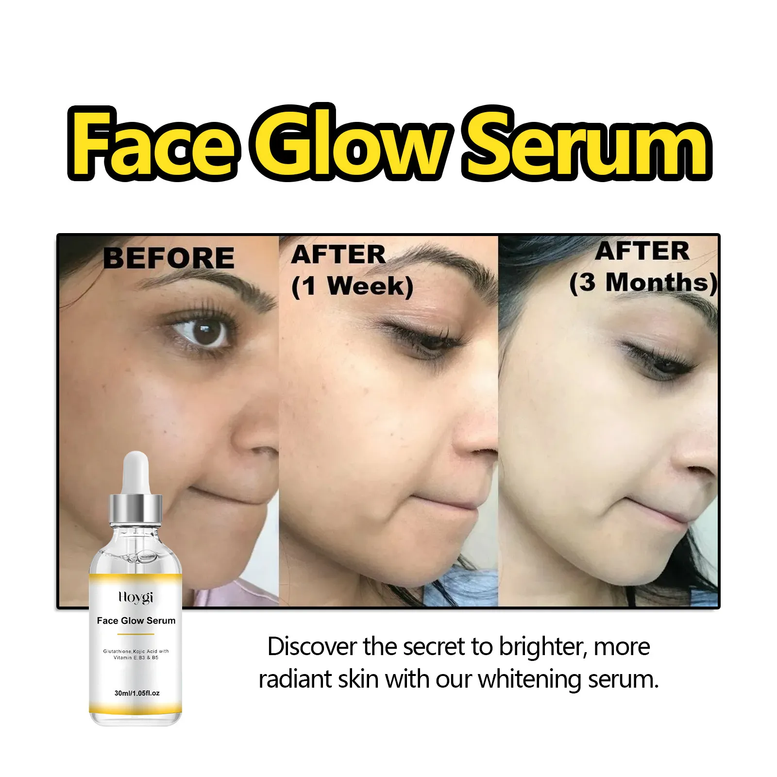 Ingredients: Water, glutathione, kojic acid, vitamin E, vitamin B3, Vitamin B5