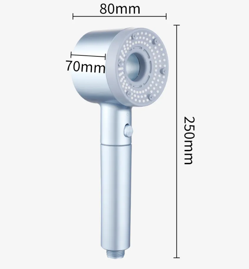 The showerhead is made from high-quality ABS plastic with a sleek, modern design. It features multiple spray modes, including spray, massage, and bubble, to suit different preferences. The one-click water stop feature helps save water, making this showerhead both eco-friendly and practical. Additionally, its lightweight build and ergonomic design make it easy to install and use, while the filters ensure cleaner water for healthier skin and hair.