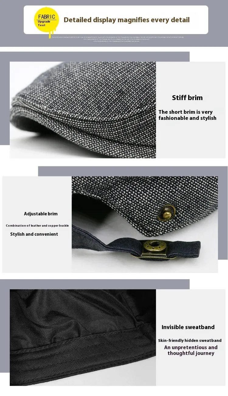 Product Description: Spring, Autumn, and Winter Pure Color Warm-Keeping Cotton and Linen Breathable Beret Men