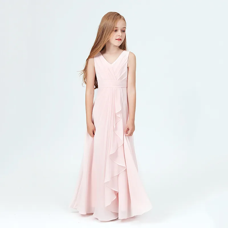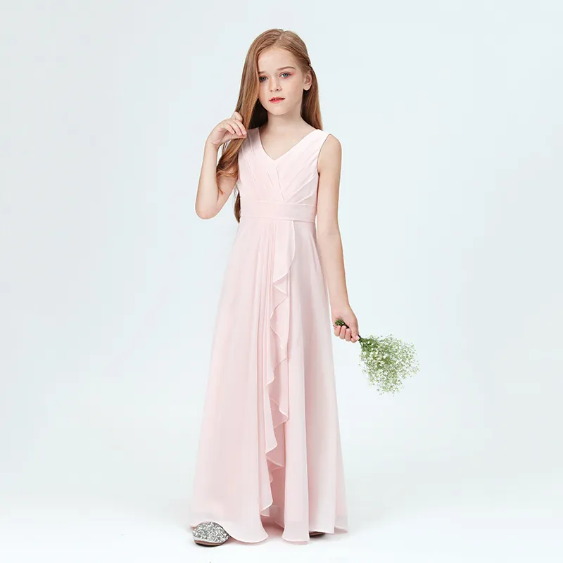 Let your child shine with effortless grace in our Spring Medium and Large Children Chiffon Sleeveless Full Dress.