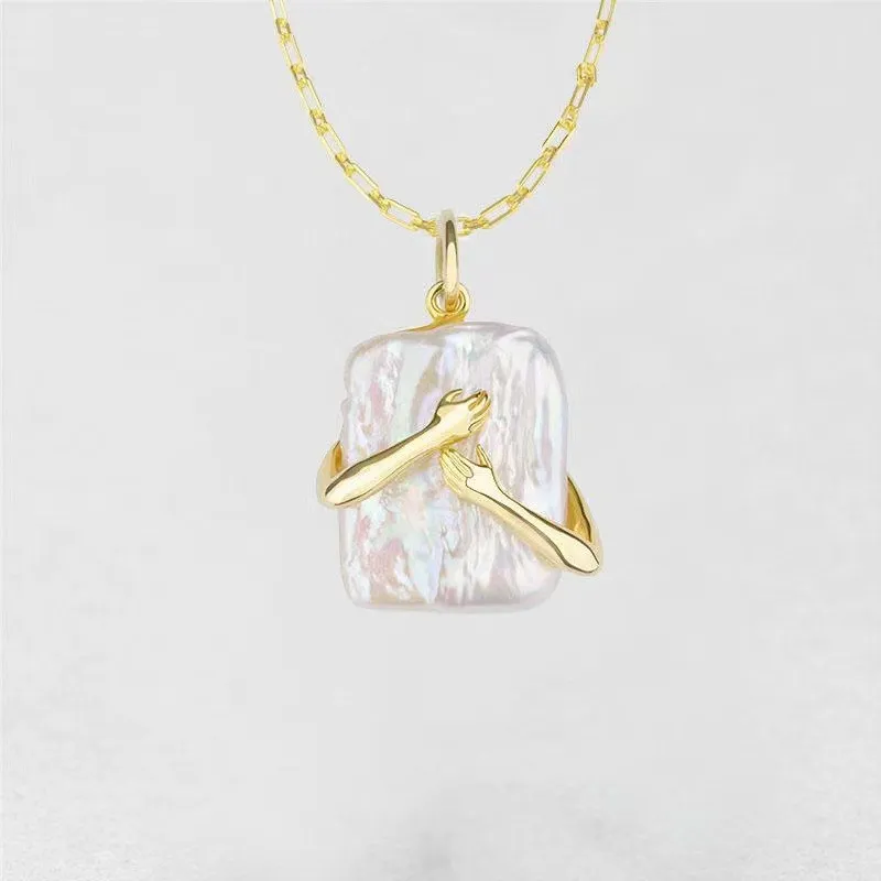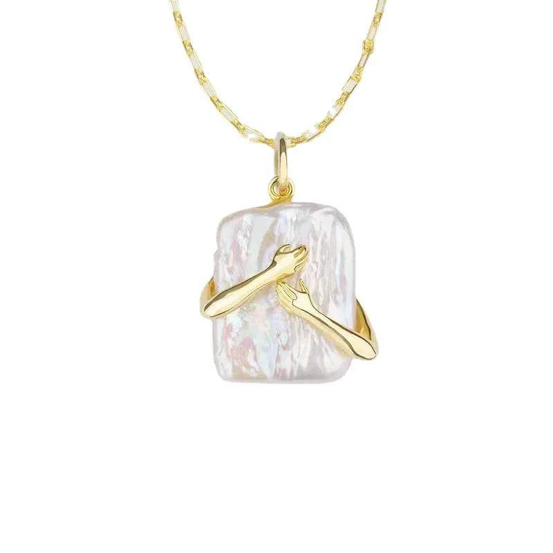 Square Baroque Pearl Couple Pendant Necklace