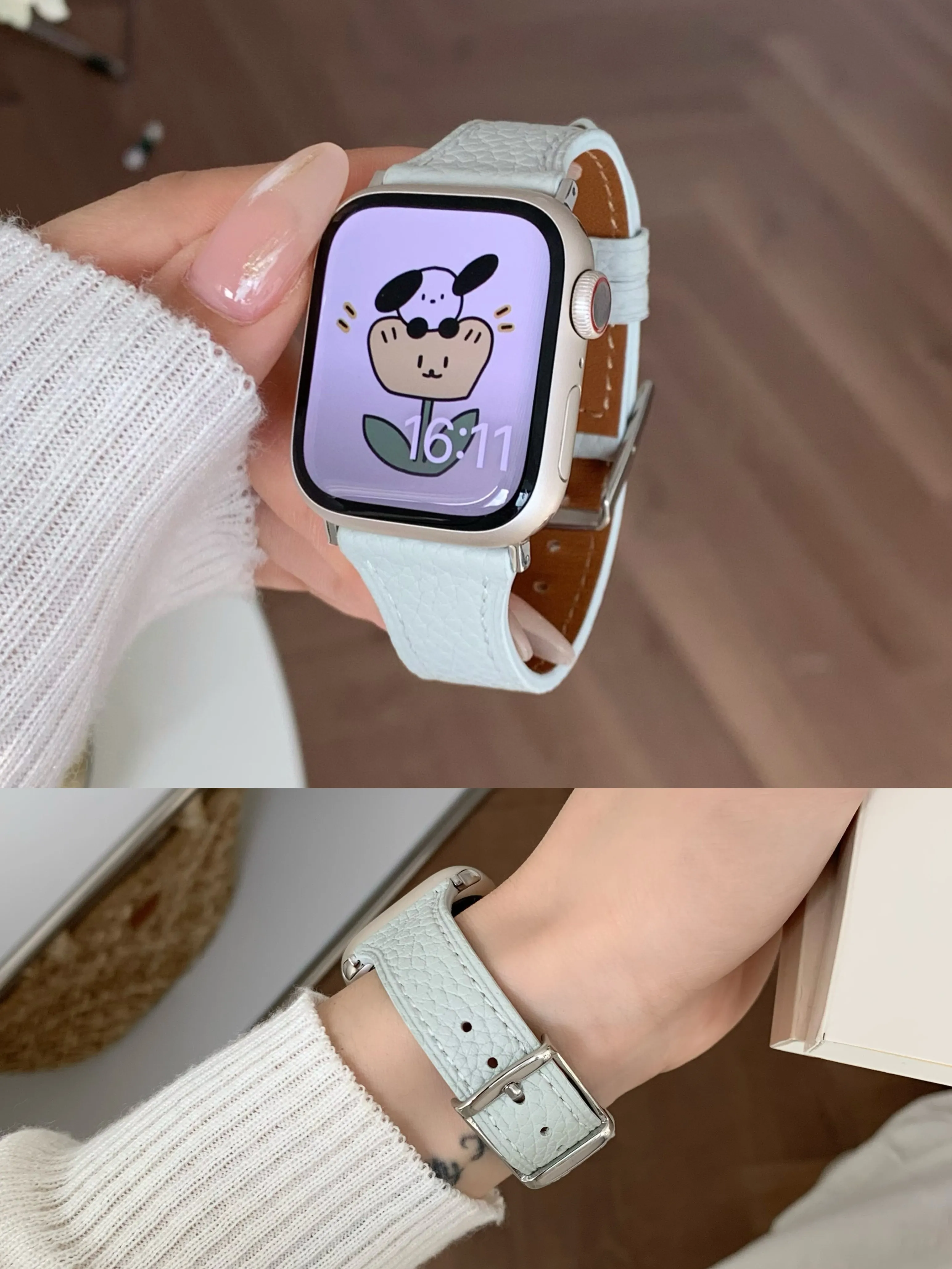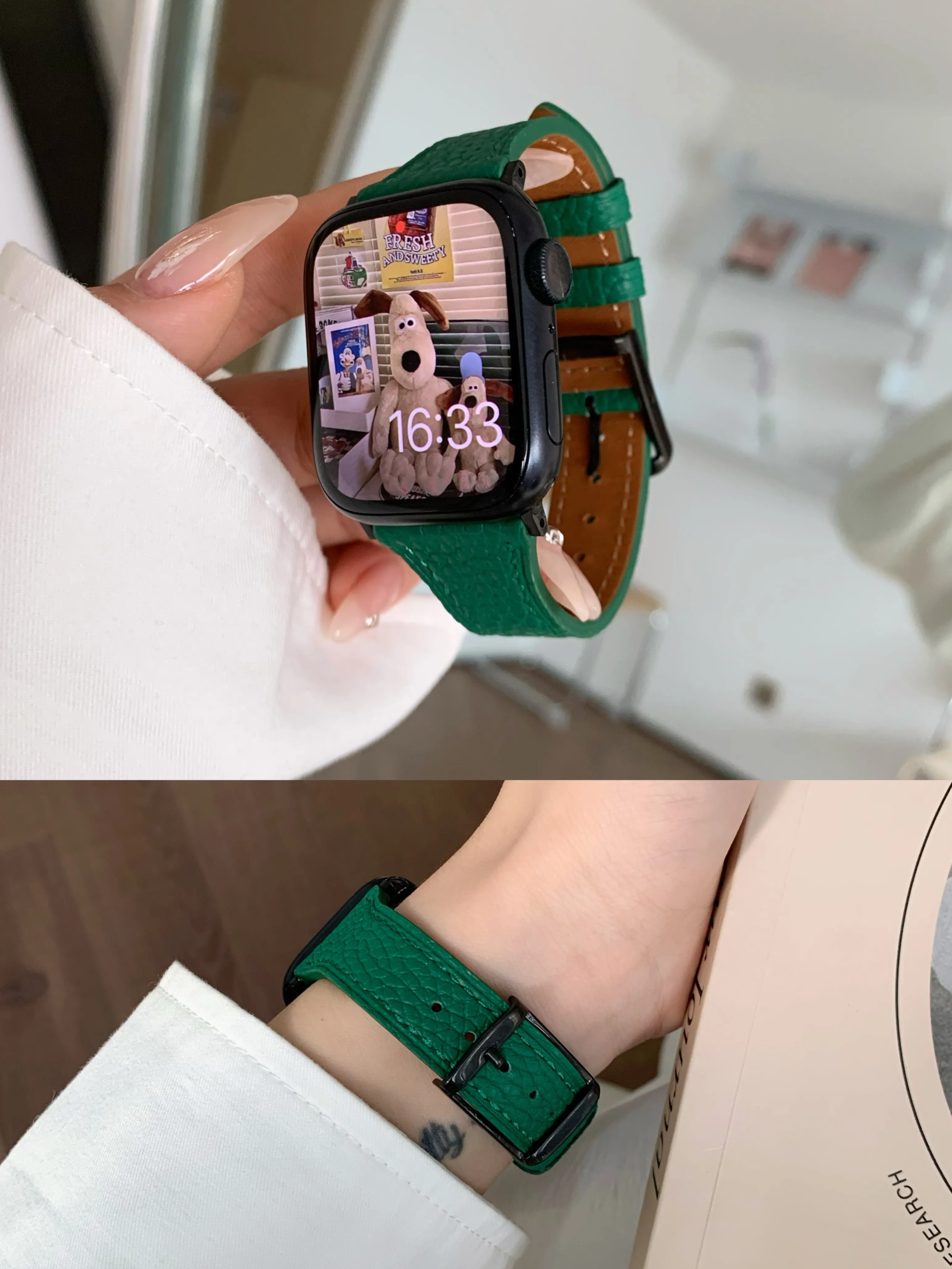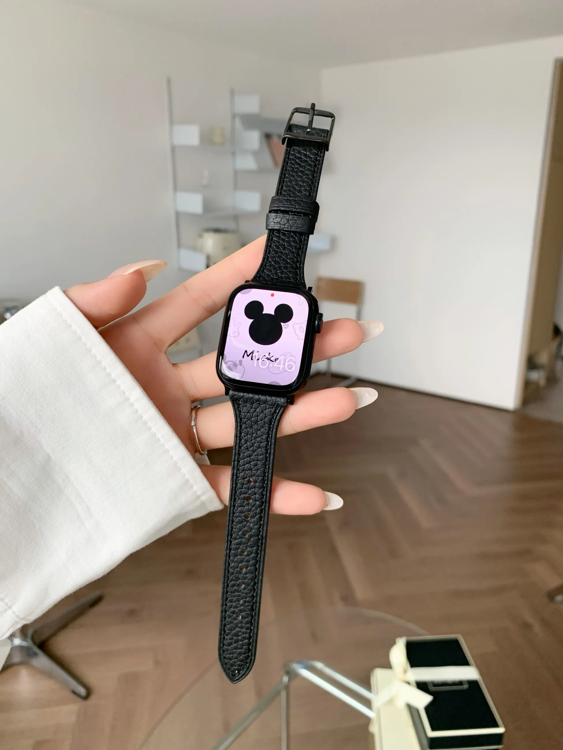 Made from high-quality lychee leather, this strap offers a luxurious feel and exceptional durability. The leather is soft to the touch, resistant to cracking, and retains its appearance over time. It’s the perfect material for an accessory that needs to withstand daily wear.