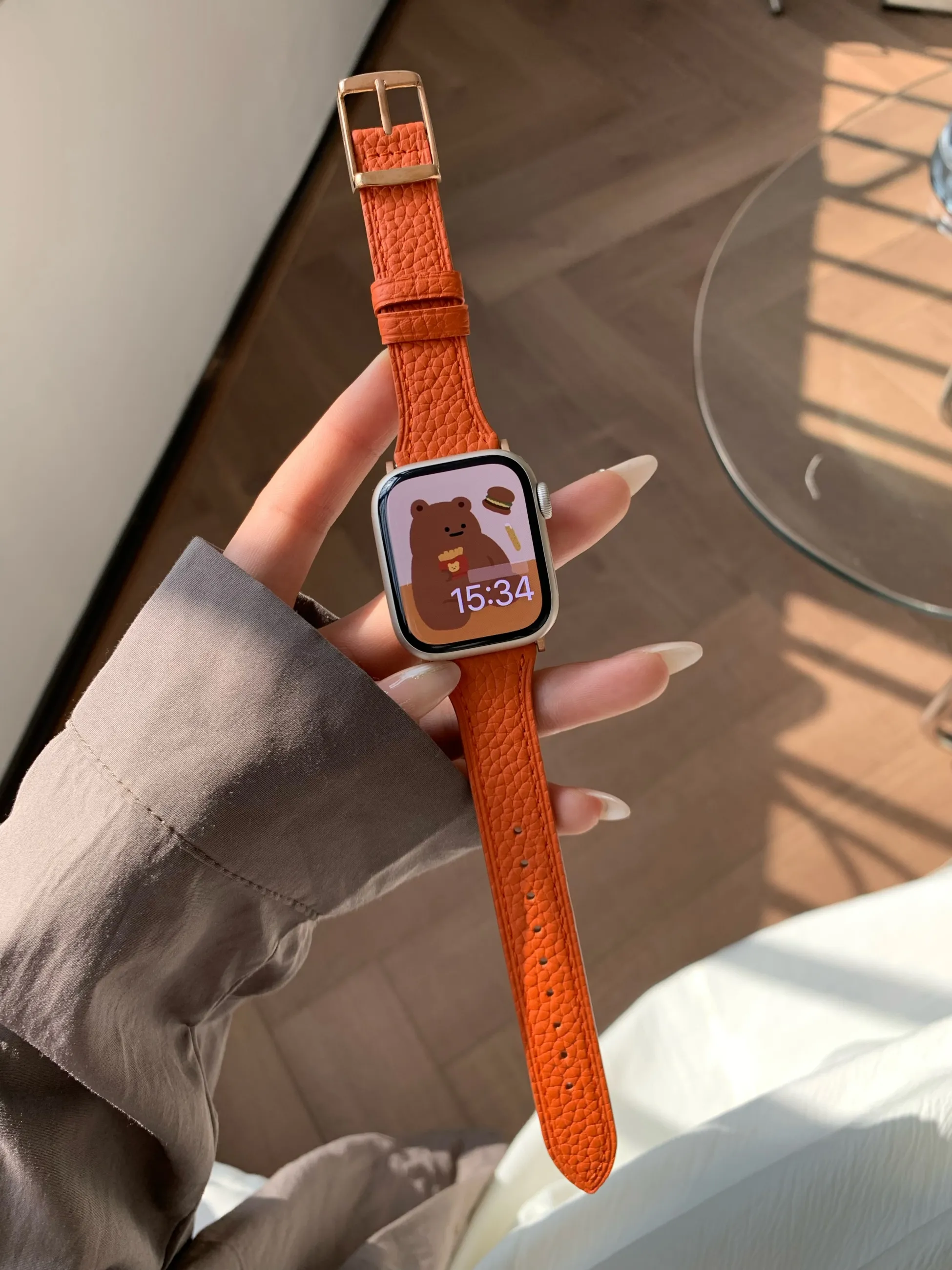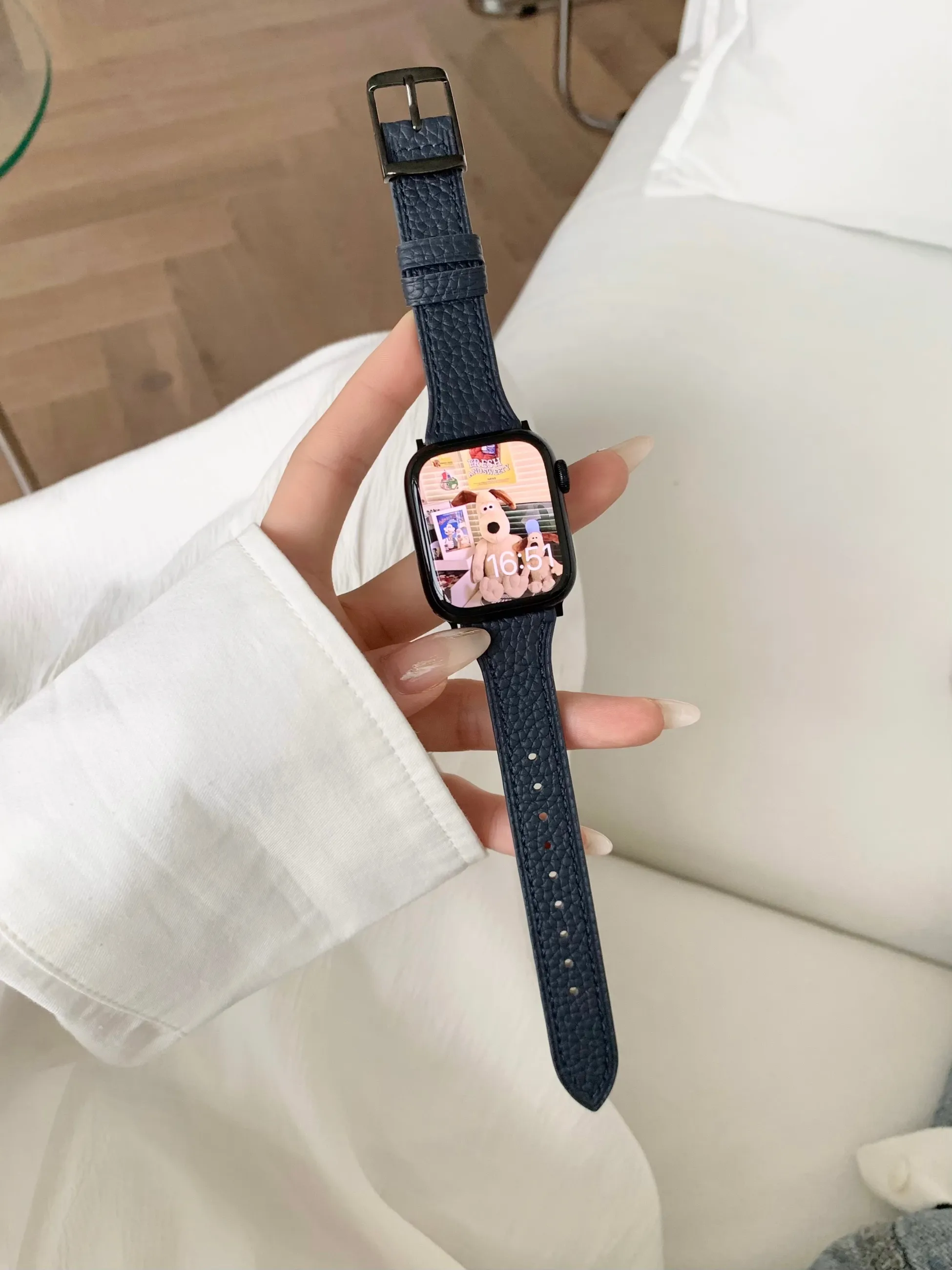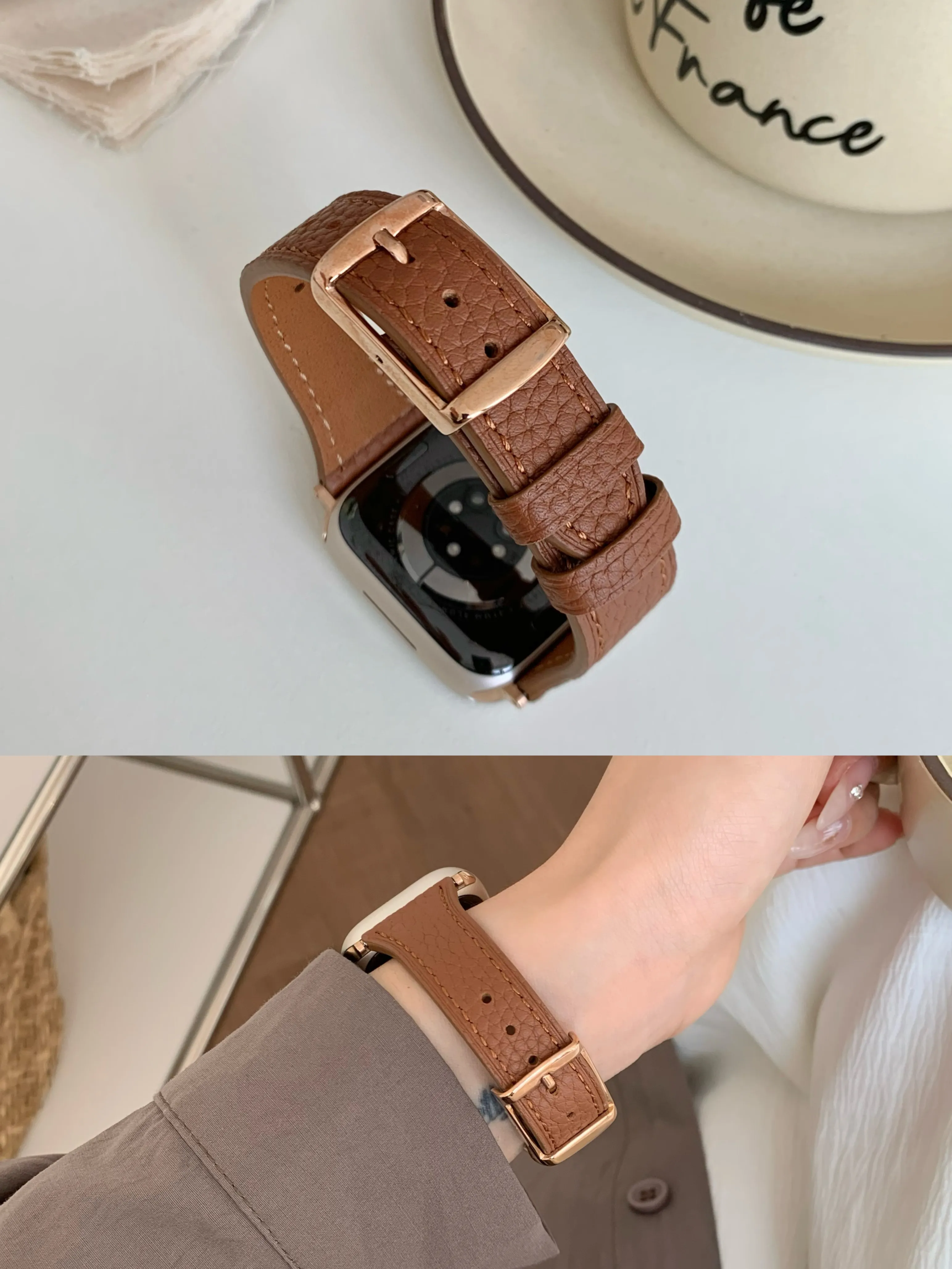 Made from high-quality lychee leather, this strap offers a luxurious feel and exceptional durability. The leather is soft to the touch, resistant to cracking, and retains its appearance over time. It’s the perfect material for an accessory that needs to withstand daily wear.