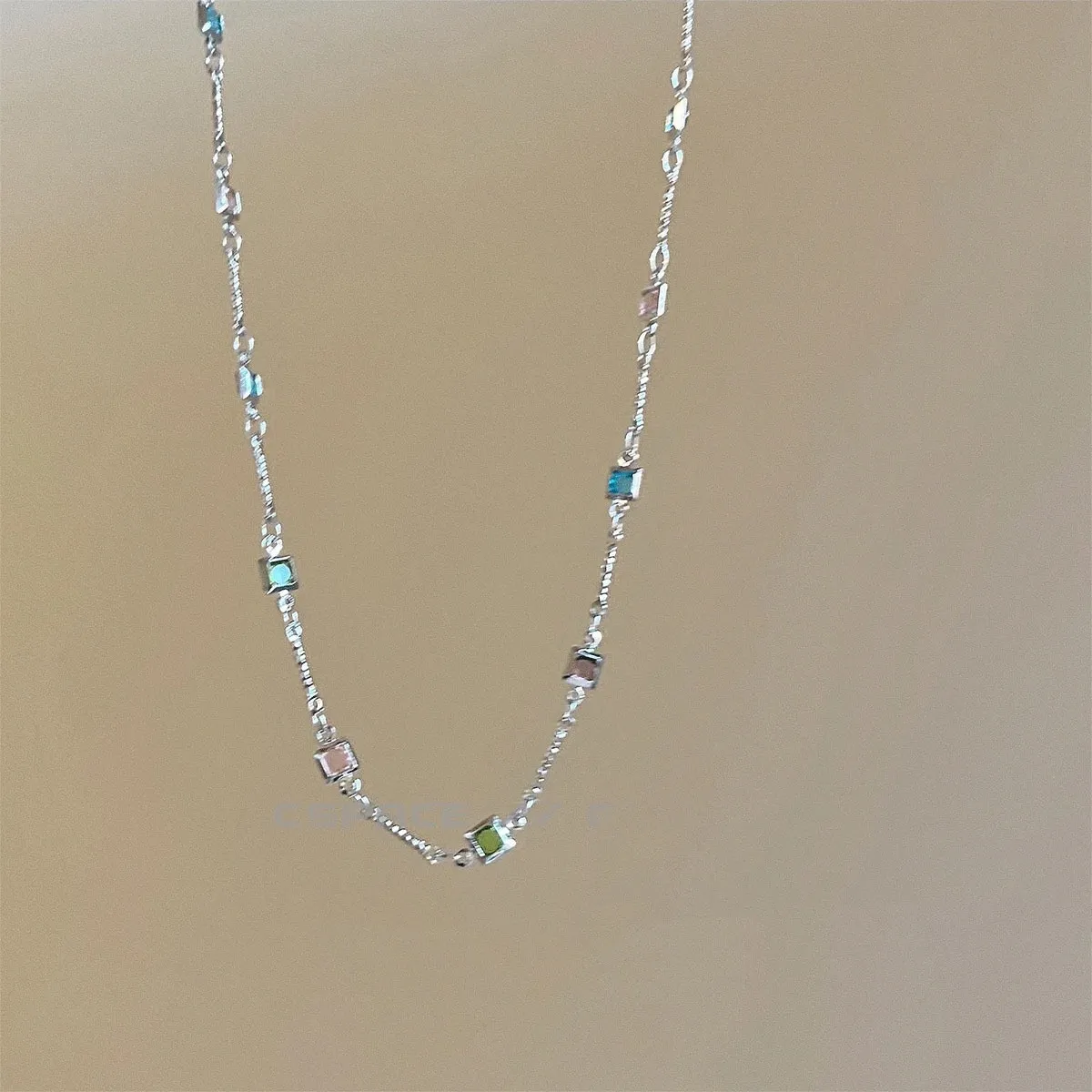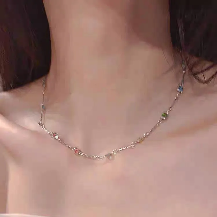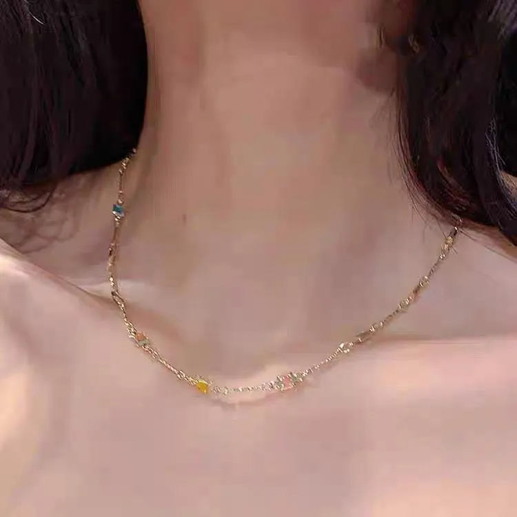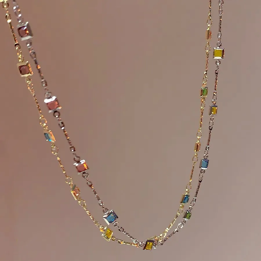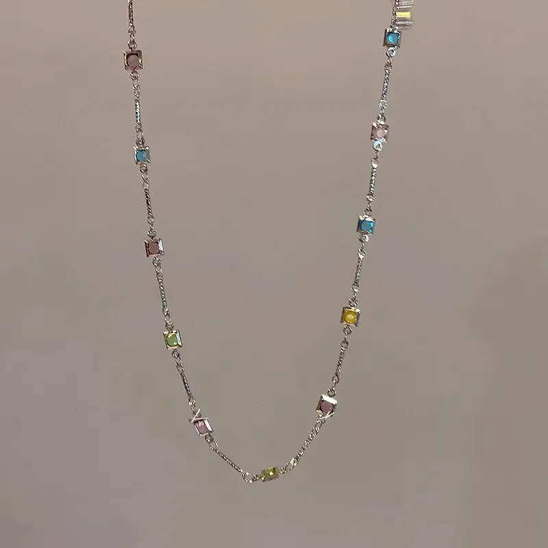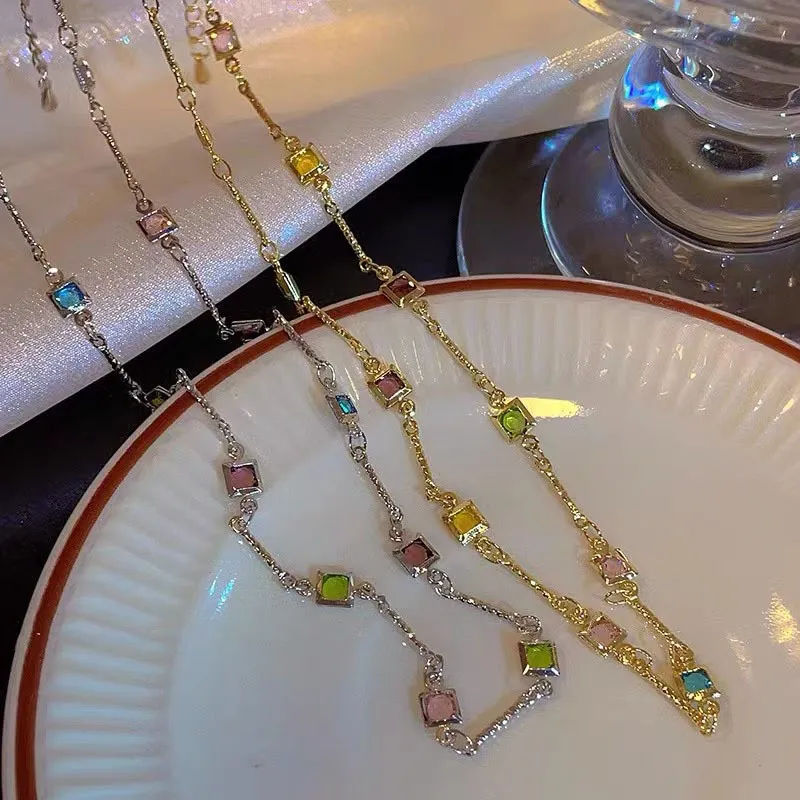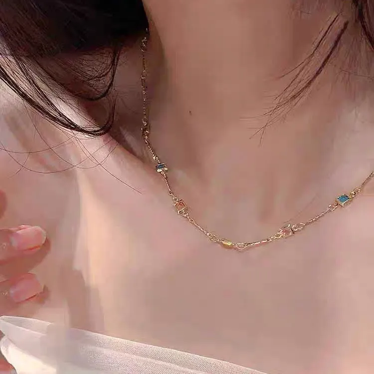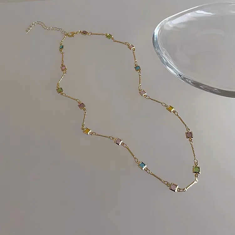 Square Color Fine Clavicle Chain Necklace Light Luxury