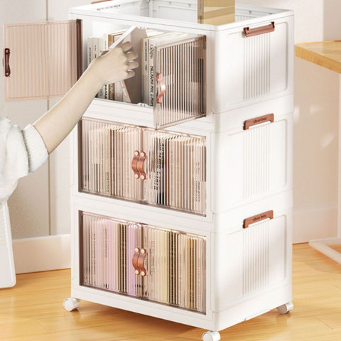 Our Stackable Storage Bins redefine the way you organize. With the ability to stack up into a storage shelf, complete with clear doors for easy visibility, these bins elevate your storage game to a whole new level. No more messy piles or jumbled items – just sleek, accessible organization at your fingertips.