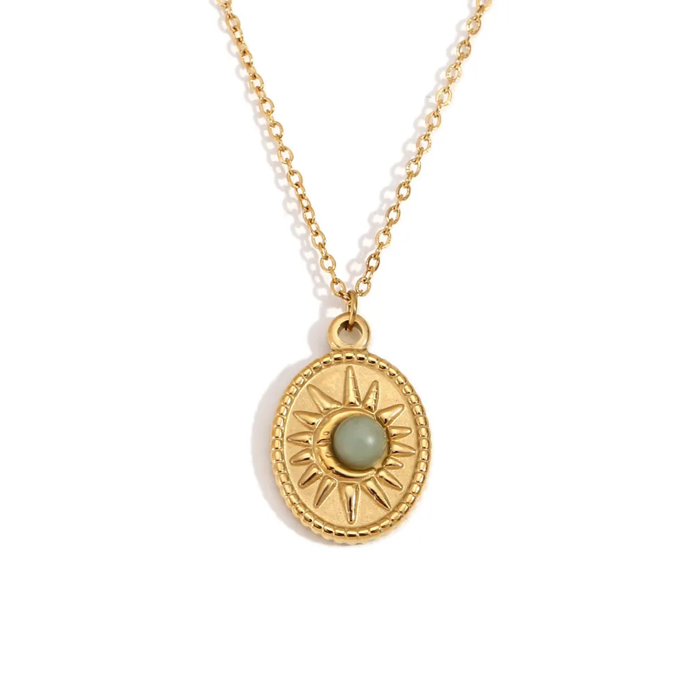 Key Features of the Stainless Steel 18K Gold Plating Oval Sun Natural Stone Pendant Necklace