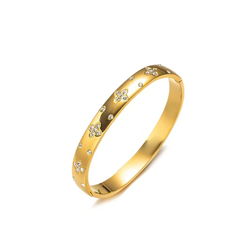 The bracelet’s sleek and polished finish ensures it catches the light beautifully, while its floral zirconia embellishments create an elegant and timeless look. Lightweight yet sturdy, this bangle offers comfortable all-day wear without compromising on style or durability. Whether worn alone or stacked with other accessories, it is a versatile addition to your jewelry collection.