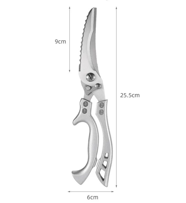 - [Multi-Functional Sharp Scissors] Sharp Zone, Strong Zone, Waste Fish Scale Zone And Bottle Opening Zone, Multi-Functional And Coexisting, One Scissor Multi-Purpose. Suitable For Cutting Bones, Chicken, Meat, Vegetables, Easily Opening Bottles And Scraping Fish Scales.