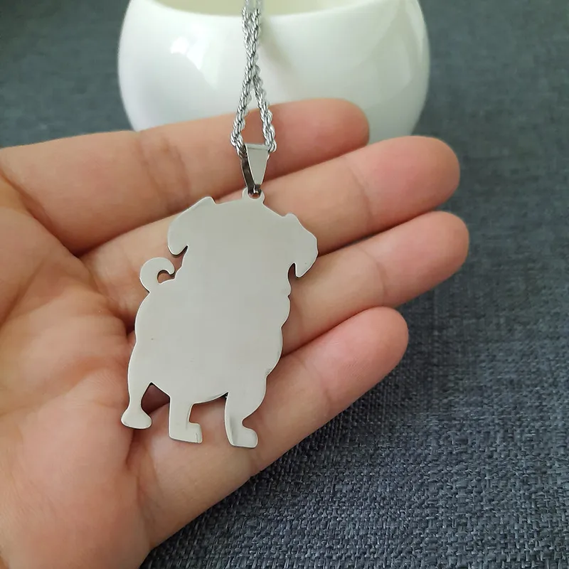 Stainless steel cartoon pug pendant necklace