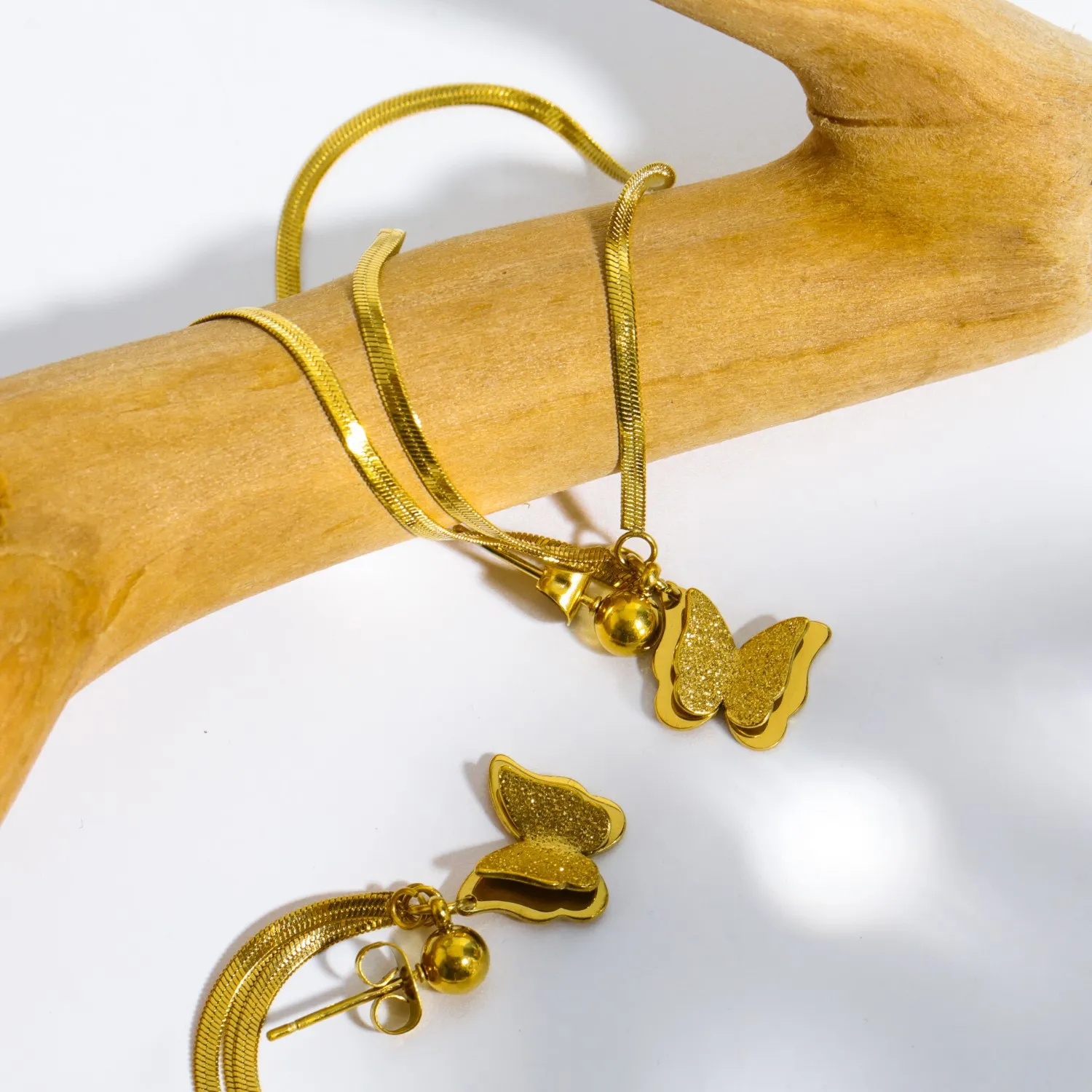 The Stainless Steel European and American Entry Lux Butterfly Earrings Wings Mori Earrings Plated 18K Gold Color Protection