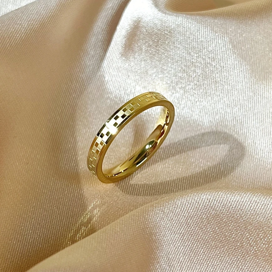 Why Choose the Stainless Steel Gold Color Chessboard Grid Thin Finger Ring?