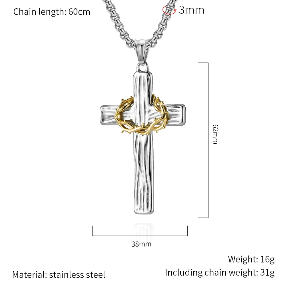 The combination of stainless steel and gold offers a contemporary and sophisticated look. The clean lines of the cross and the polished finish give it a modern appeal that can complement both casual and formal outfits.