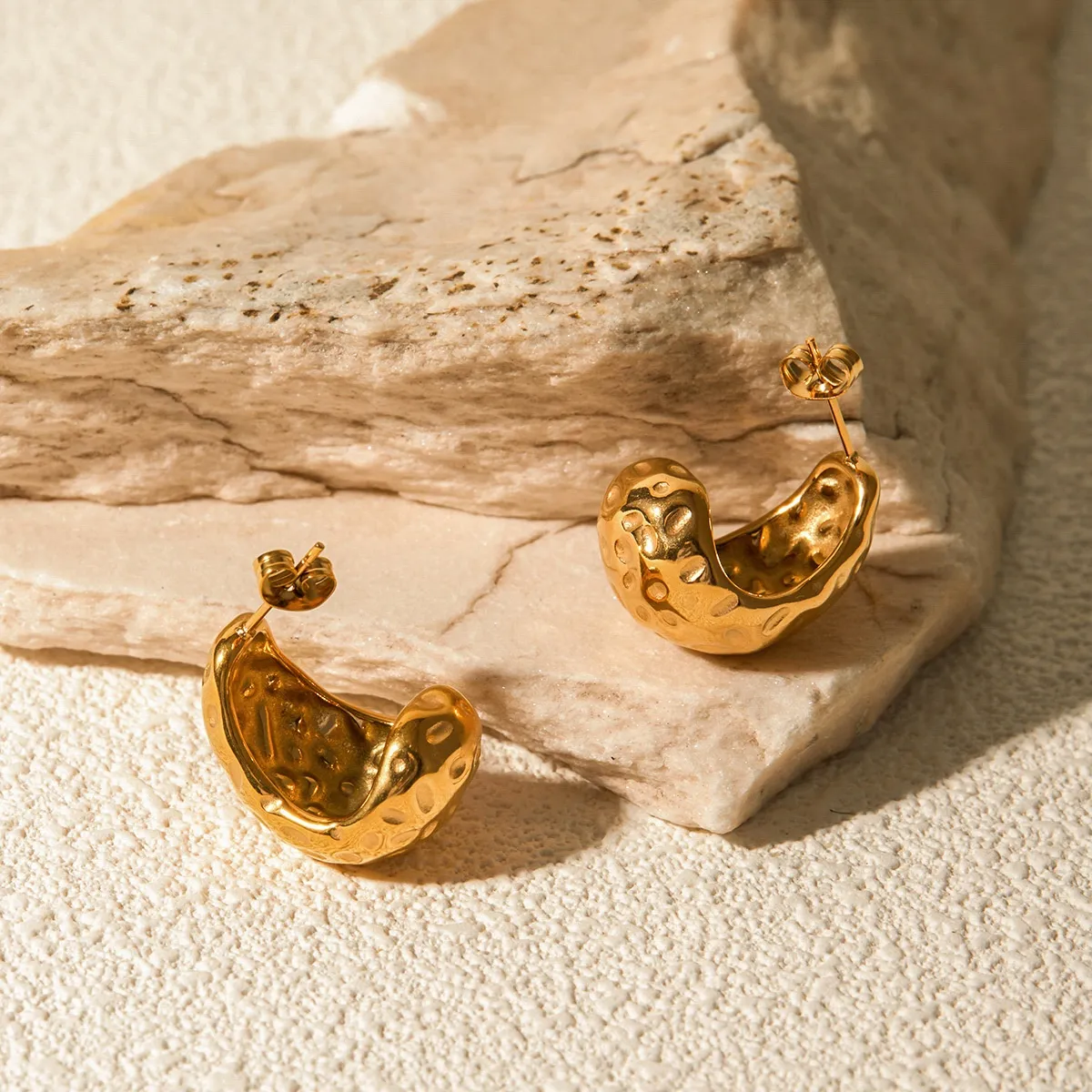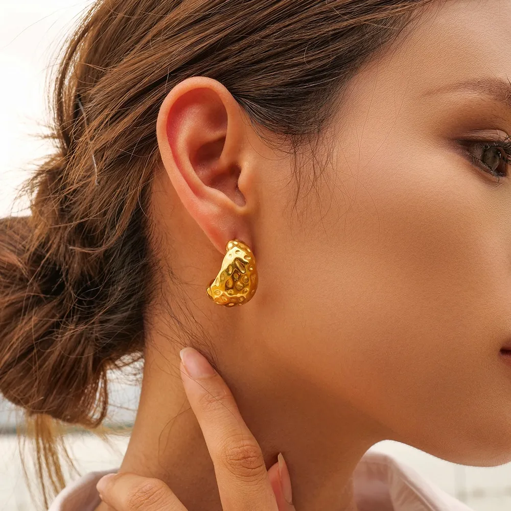 Stainless Steel Hammer Pattern Drop-shaped Earrings