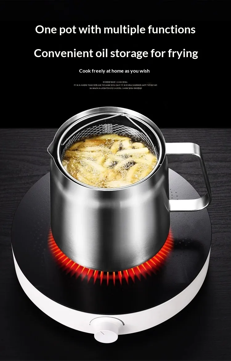 The fine mesh strainer in this pot effectively filters out food particles, debris, and impurities from oil, broths, or sauces. This ensures that you get clean, filtered liquids, whether you're saving oil for reuse or making a smooth broth. It’s perfect for anyone who enjoys cooking fried foods or preparing homemade stocks.