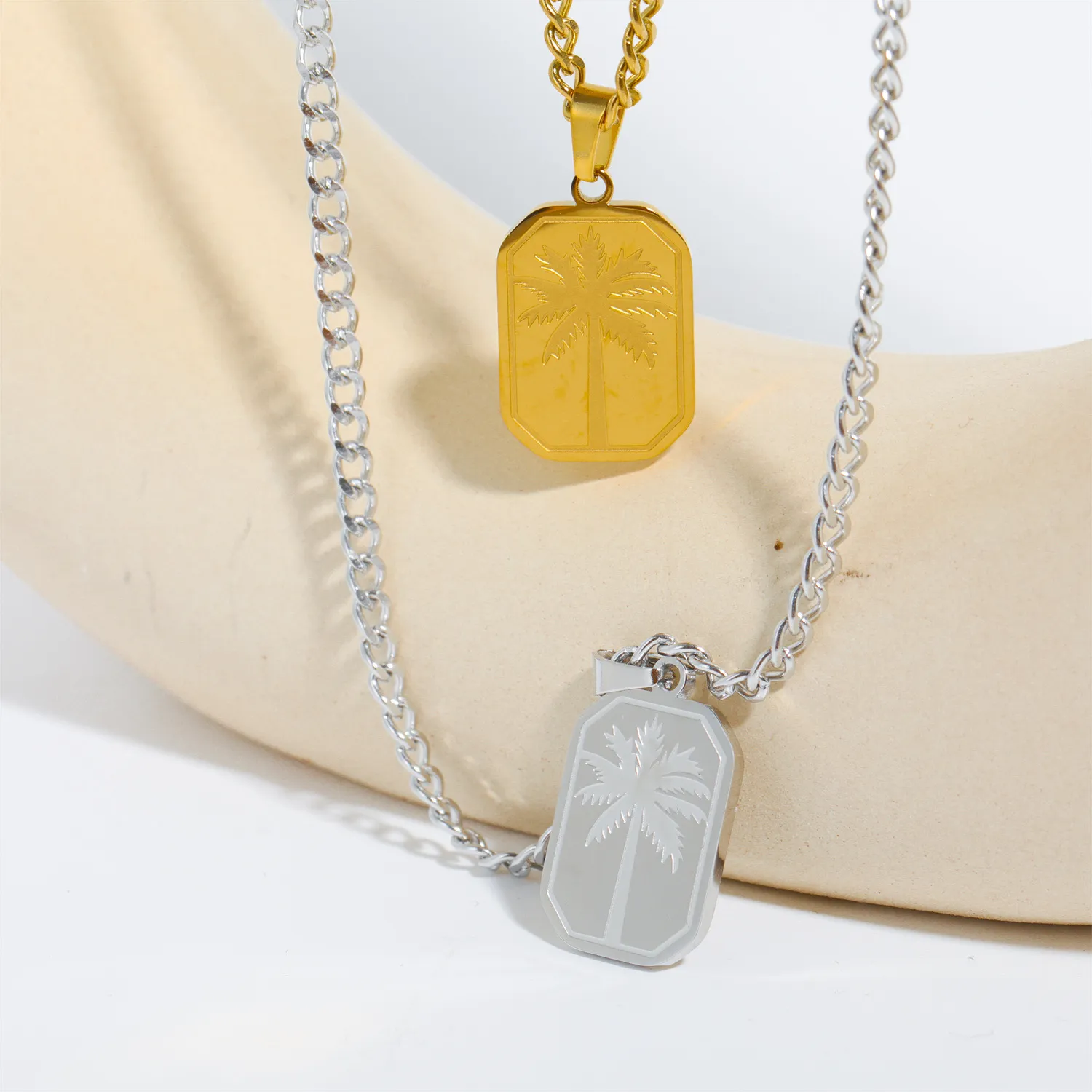 Crafted from high-quality stainless steel, this necklace is built to last. Stainless steel is known for its strength, corrosion resistance, and lightweight properties, making it an ideal material for jewelry that can withstand everyday wear. Unlike many other metals, stainless steel retains its shine and appearance over time, ensuring that the necklace remains beautiful for years to come.Additionally, stainless steel is hypoallergenic, making it a great choice for those with sensitive skin. The durability of this material ensures that the palm leaf pendant stays securely in place and retains its shape, even with frequent use.