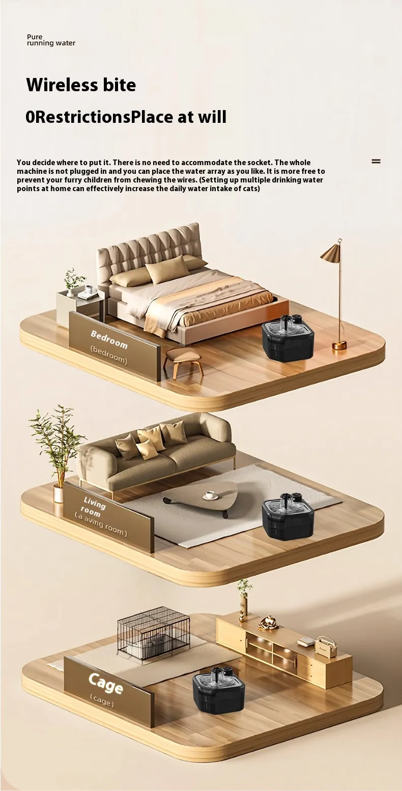 The Wireless Induction Automatic Water Outlet uses advanced sensor technology to detect your pet’s approach. When your pet comes near, the water is automatically dispensed, ensuring a hassle-free and hygienic drinking experience. No need for manual pumps or buttons – the system works automatically, providing convenience for both pets and pet owners.