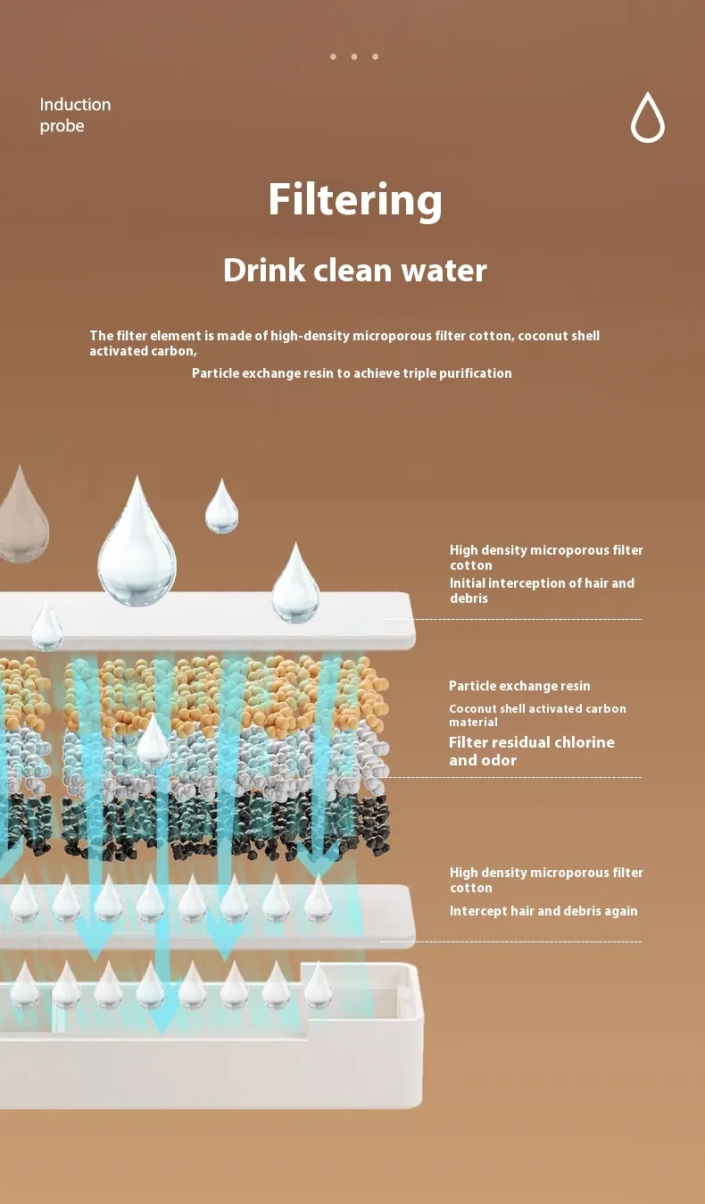 The automatic water flow feature ensures that your pet gets a continuous supply of fresh water, without the need for constant refilling. The induction system detects when your pet is close and dispenses water as needed, allowing your pet to drink comfortably and naturally. It’s perfect for busy pet owners who want to ensure their pets stay hydrated throughout the day.