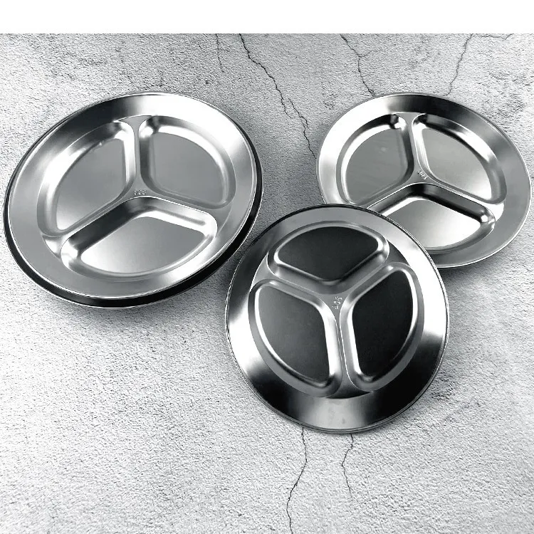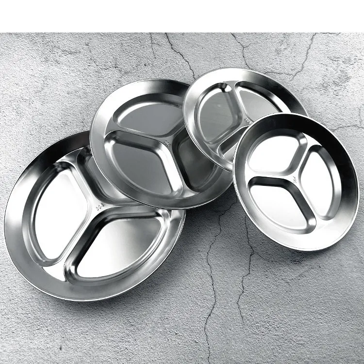 Color: 21cm round three-grid plate (304),23cm round three-grid plate (304),25cm round three-grid plate (304),27cm round three-lattice plate