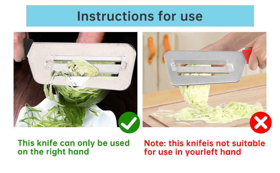 - 【Comfortable Handle】This cabbage chopper knife have the advantage of a classic shredder and easiness of an ordinary knife. It's very easy to use. The handle on this shredder is comfortable to hold, it also works very efficiently so you can shred through cabbage quickly