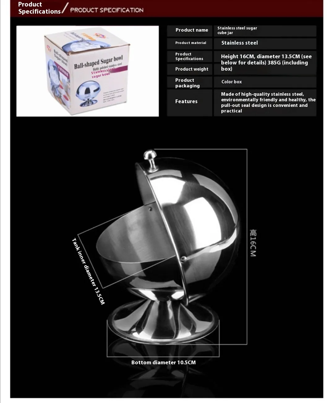 Stainless Steel Spherical Flip Sugar Bowl Storage Tank