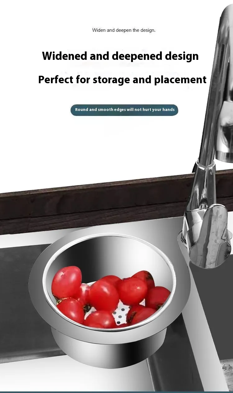 Made from food-safe, rust-resistant stainless steel, this drain basket is a durable and eco-friendly choice for your kitchen. It won't leach chemicals like plastic alternatives, ensuring your food is always safely washed.