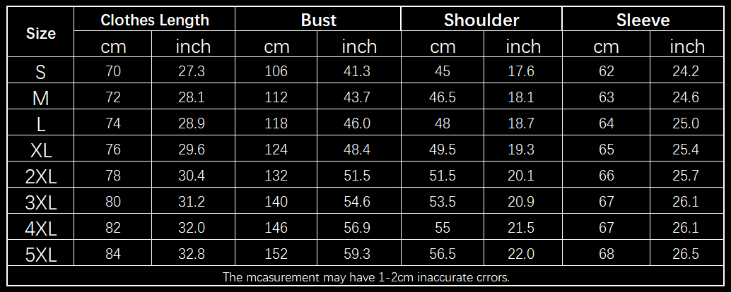 Size: S,M,L,XL,2XL,3XL,4XL,5XL
