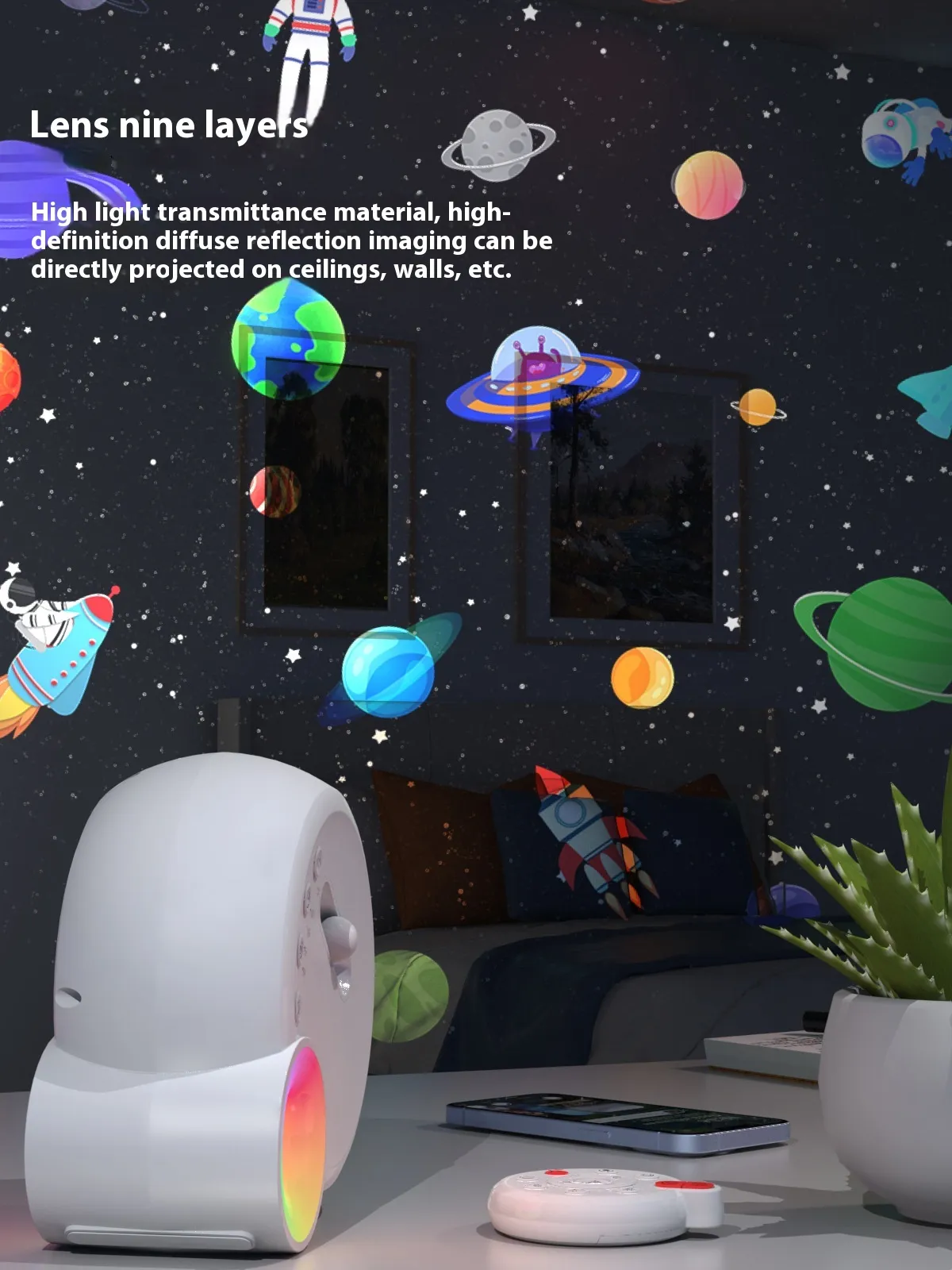The projector has a built-in speaker that syncs with the lighting effects, creating an immersive experience with your favorite music or sounds. Play your favorite playlist, and the stars will dance to the rhythm!