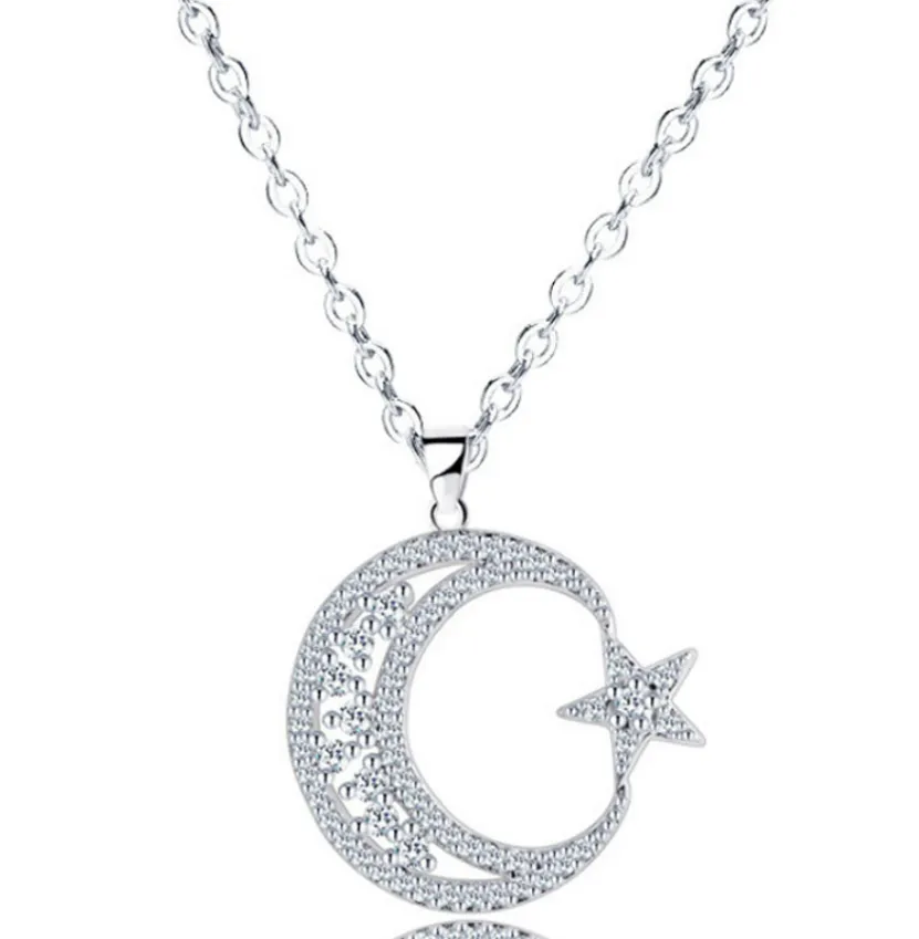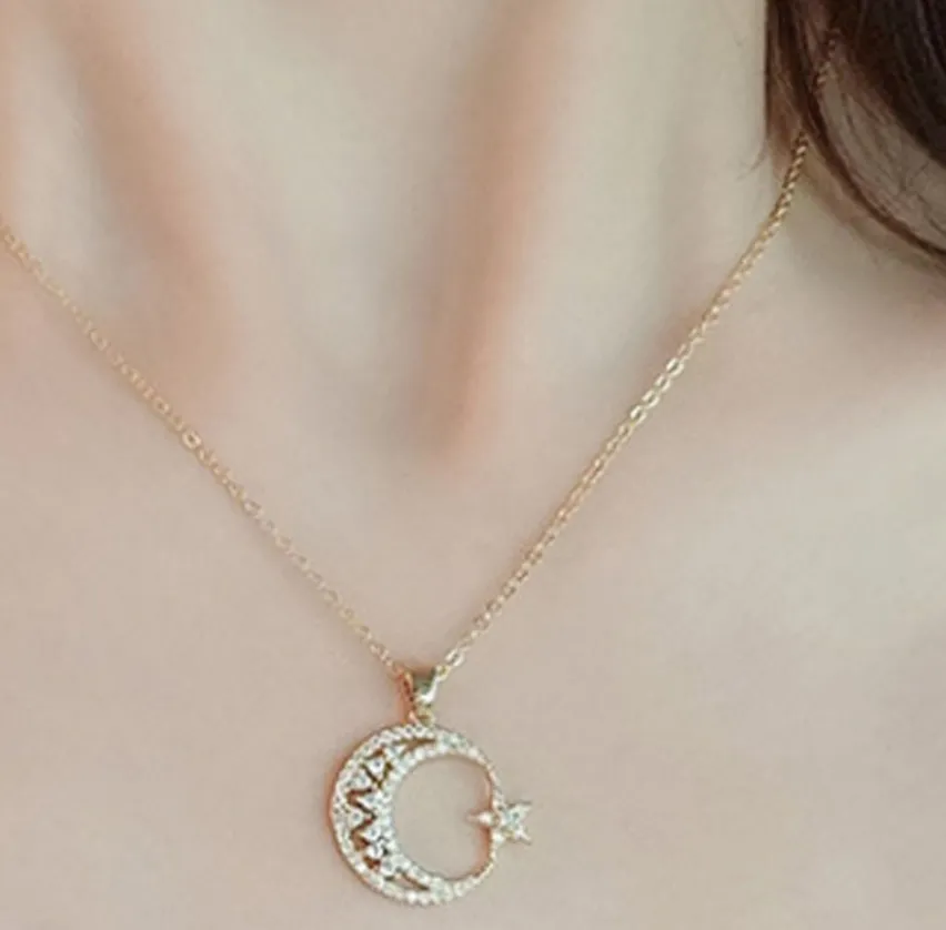 Star Moon Diamond Inlaid Clavicle Chain Necklace