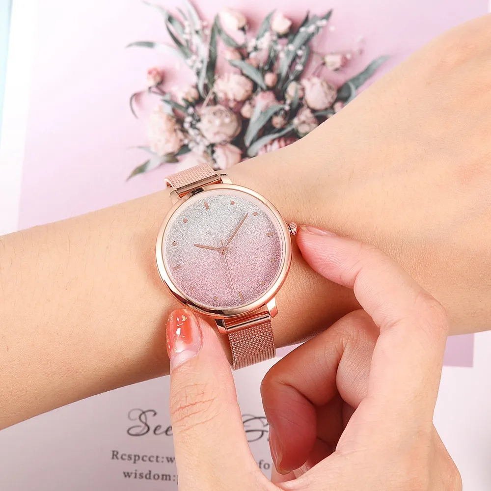 In conclusion, the Starry Quartz Mesh Watch is more than just a timepiece—it's a statement piece that brings a celestial elegance to your wrist. The shimmering starry dial, paired with the sleek mesh strap and precise quartz movement, makes it a versatile and reliable accessory. Whether you're dressing up for a special occasion or adding a unique touch to your everyday wear, this watch is sure to impress.
