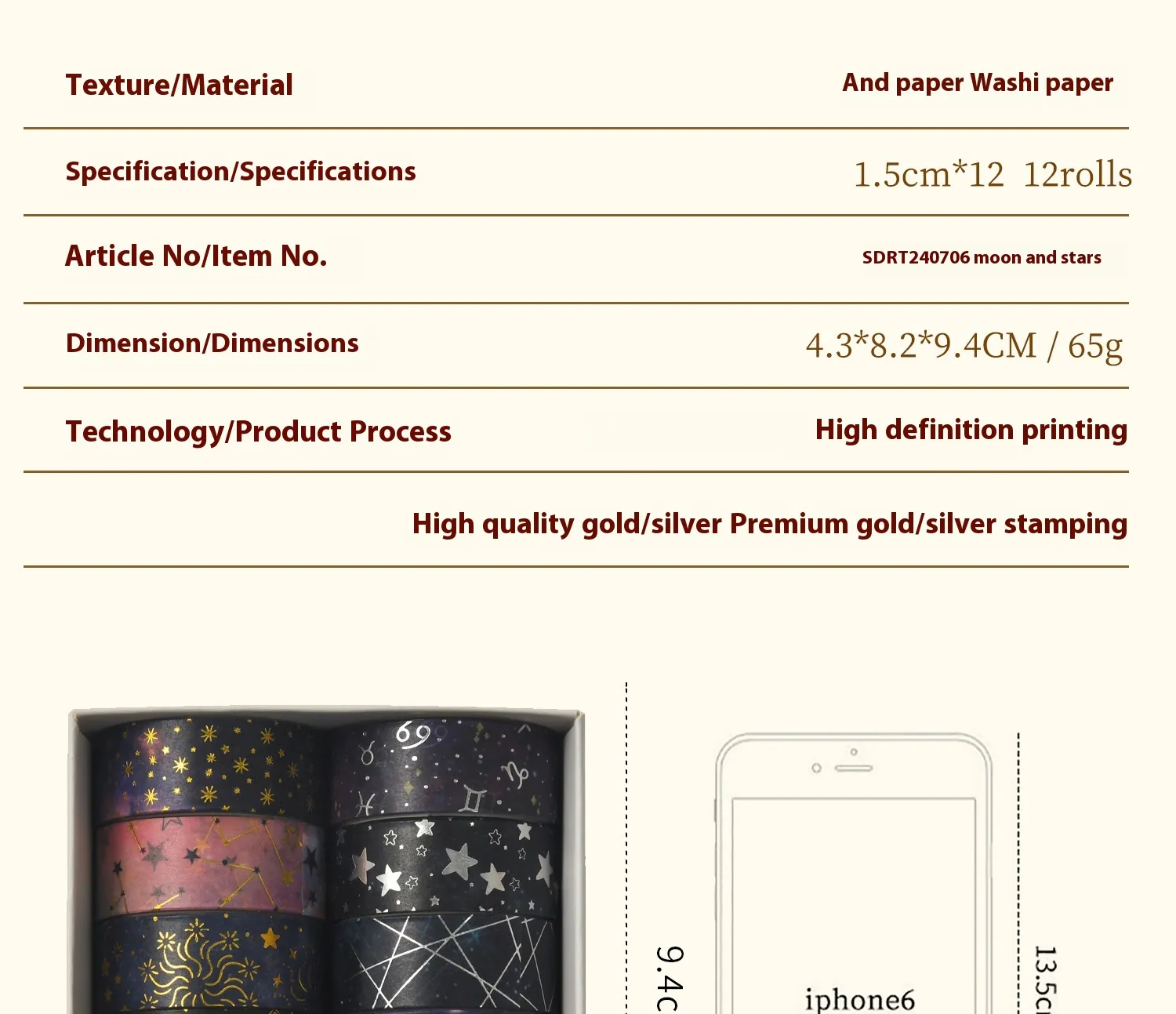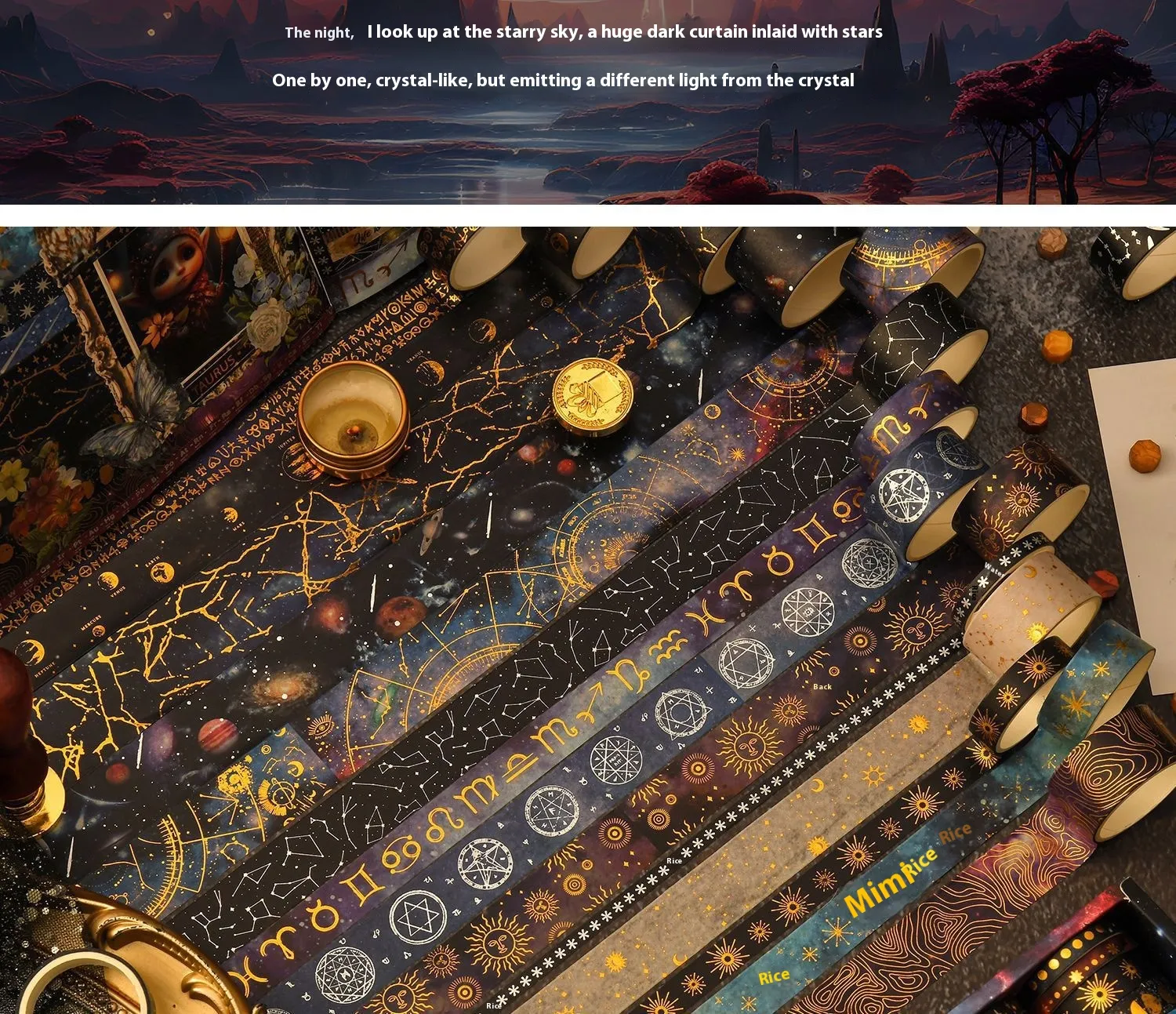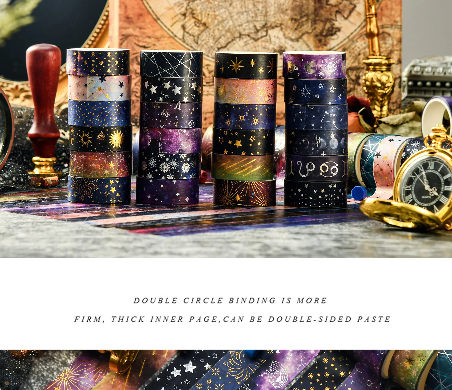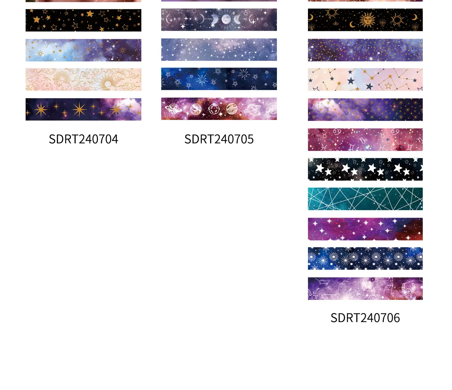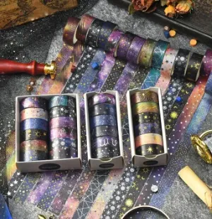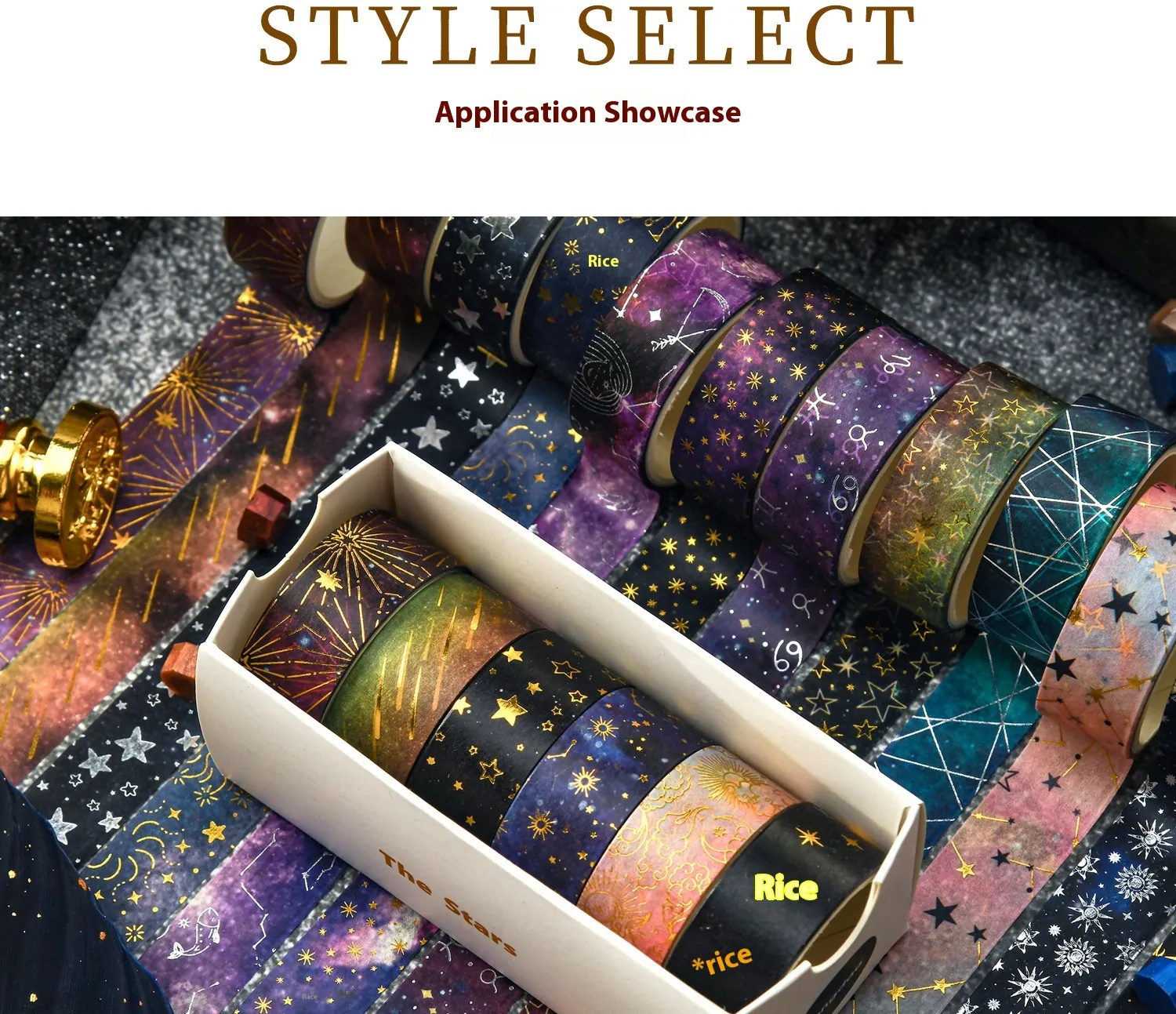 Featuring stars, moons, sunflowers, and fireworks-inspired patterns, this tape brings creativity and charm to your projects. Ideal for adding a mystical, dreamy touch to journals, planners, scrapbooks, and handmade cards.