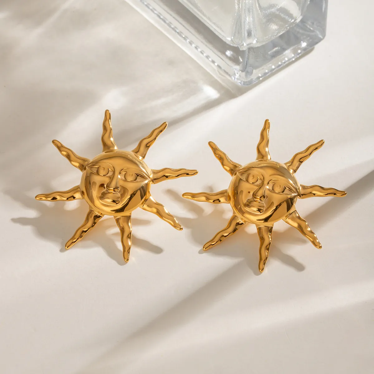 Steel Retro Hammered Sun Earrings