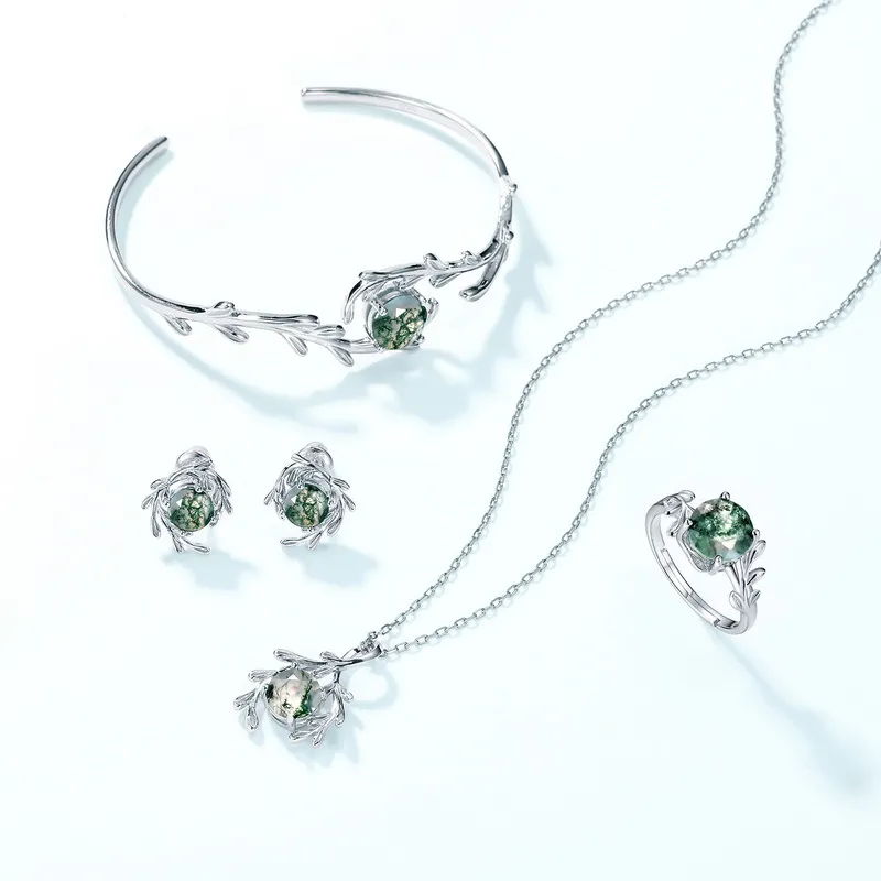 The Sterling Silver Green Moss Stone Water Plants Agate Bracelet is a striking piece of jewelry that captures the serene beauty of nature in its most delicate form. Inspired by the lush, vibrant green moss and water plants that thrive in peaceful, natural environments, this bracelet features a stunning green moss stone centerpiece, set in high-quality sterling silver. The unique agate stones bring an earthy charm, making this bracelet a perfect choice for women who appreciate the calming influence of nature, as well as the timeless elegance of fine jewelry.