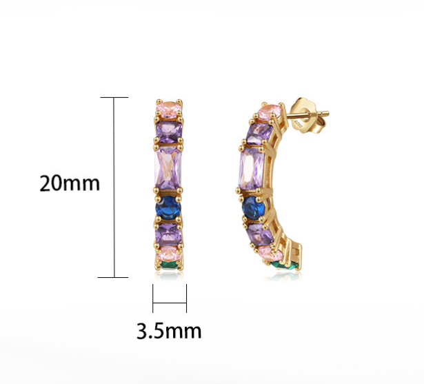 Sterling Silver Micro-inlaid Color Zircon Earrings