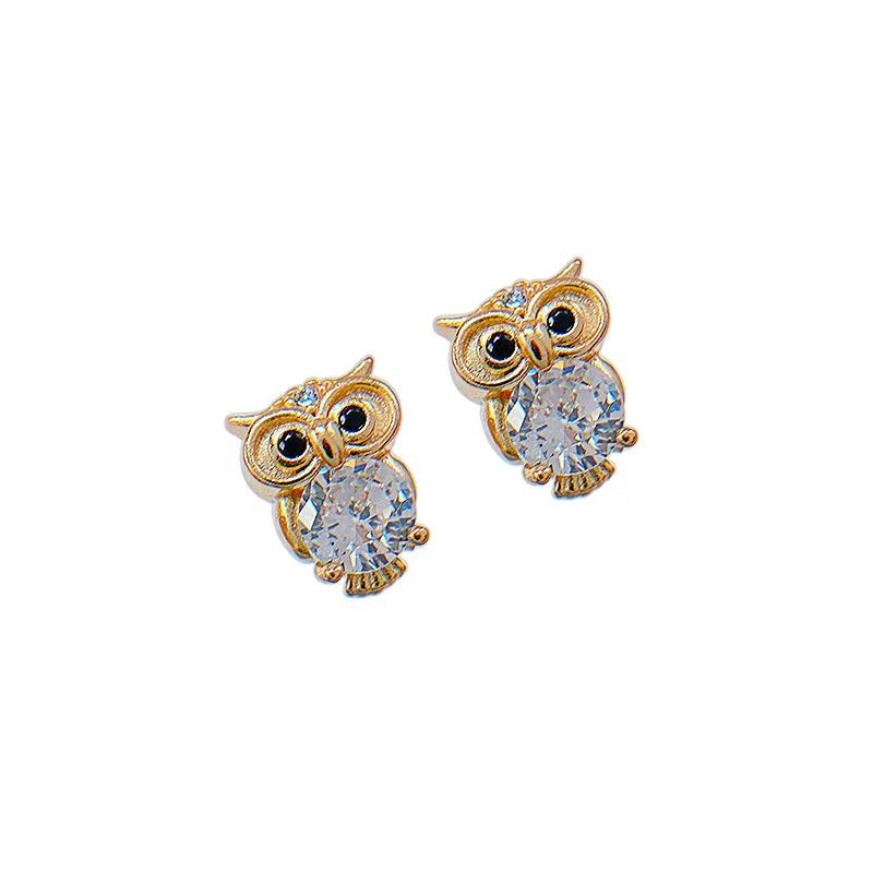 Sterling Silver Owl Zircon Earrings Female White Diamond