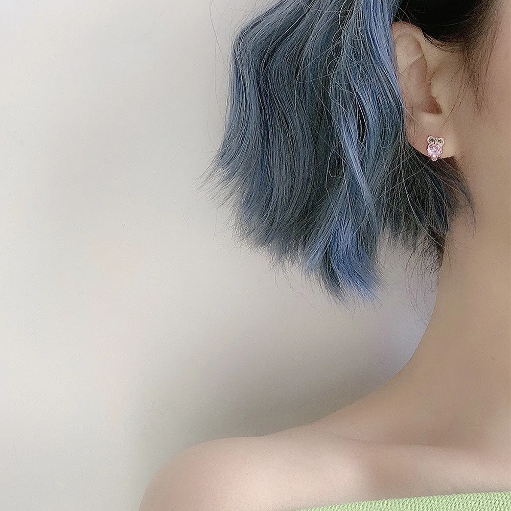 Color: Owl white diamond earrings (copper plated gold), owl pink diamond earrings (copper plated rose gold)