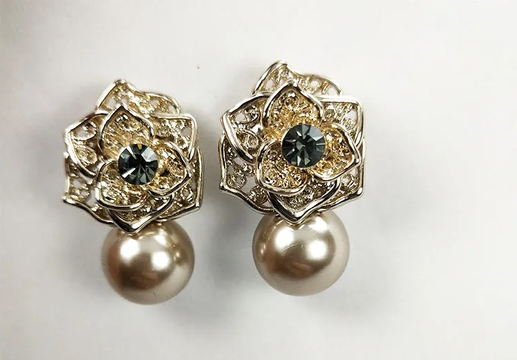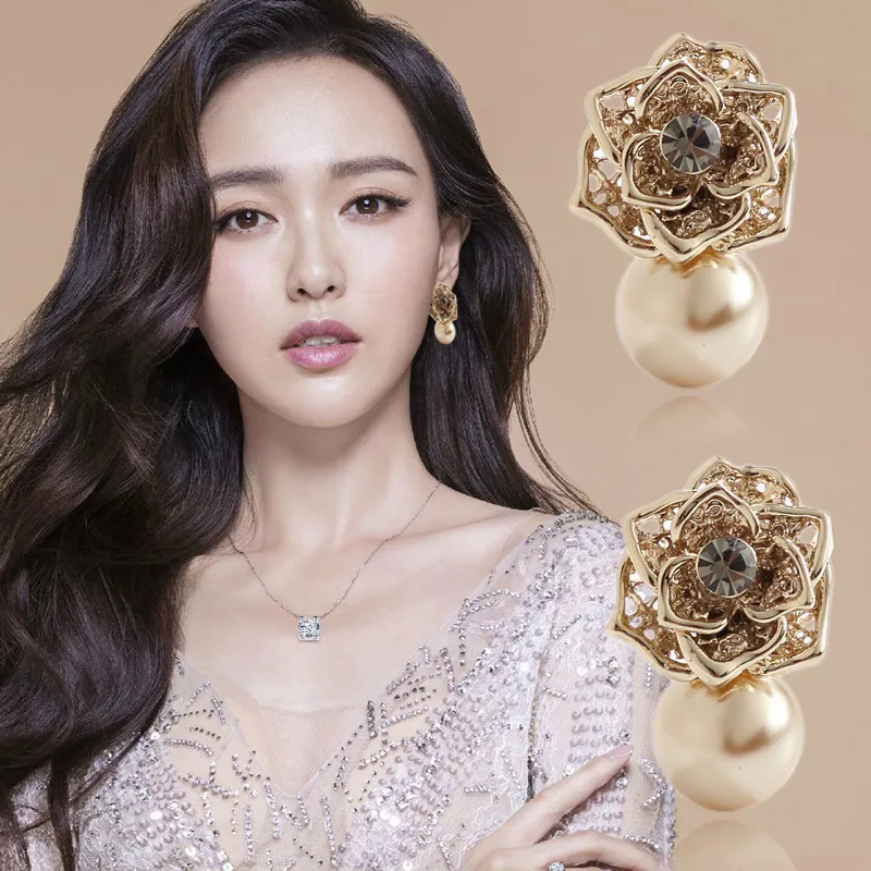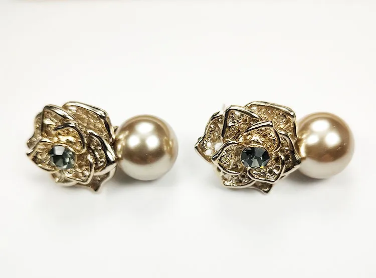 Sterling Silver Rose Rhinestone Pearl Earnail Lady