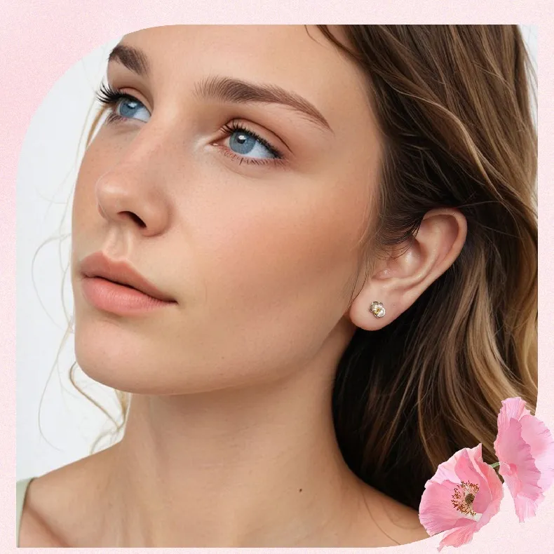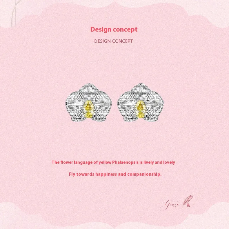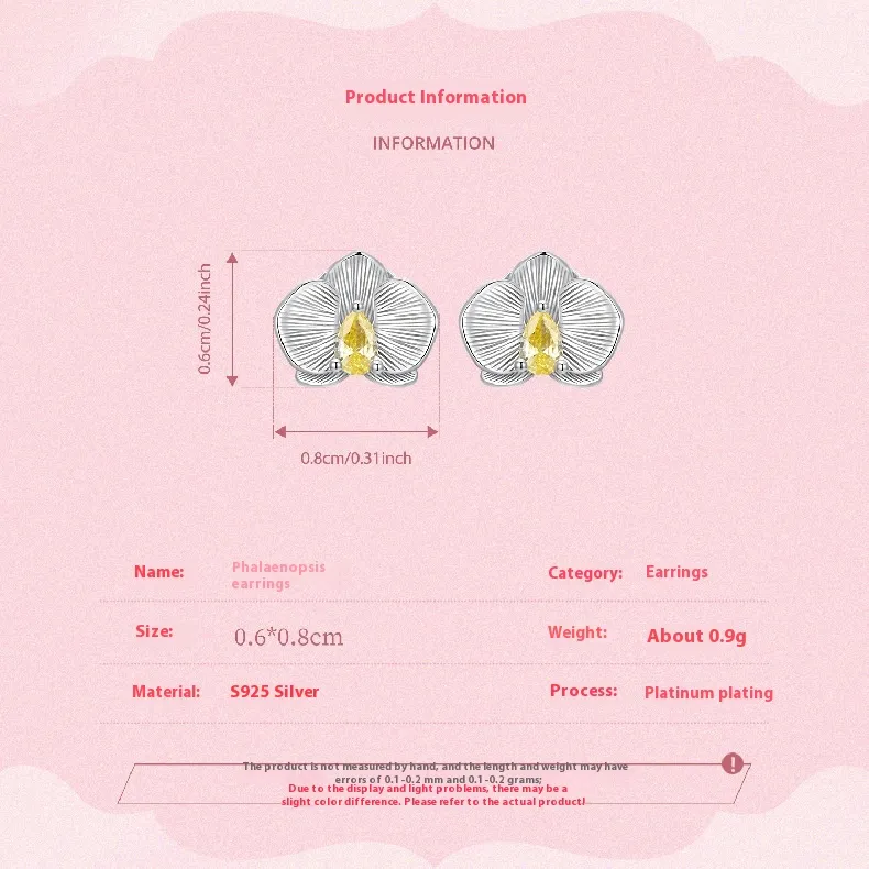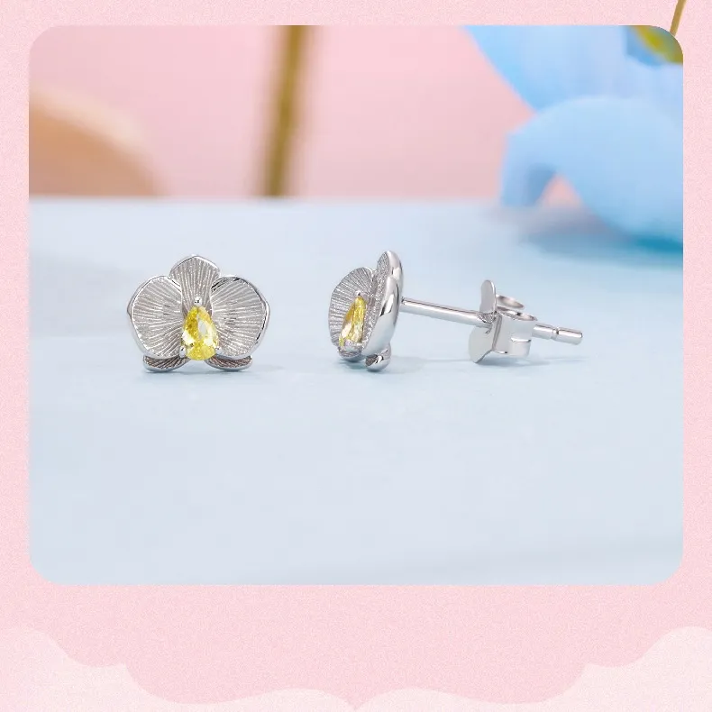 Sterling Silver White Gold Plated Phalaenopsis Stud Earrings