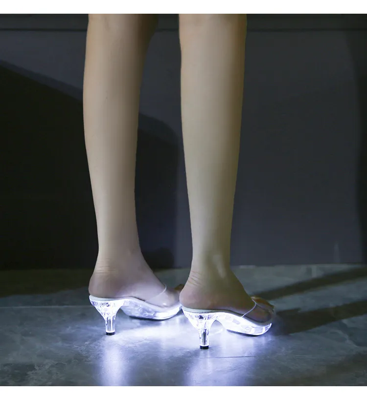 In conclusion, the Stiletto Transparent Crystal Car Model Luminous High Heel Platform Shoes Slippers are the ultimate choice for anyone looking to make a fashion statement. With their glamorous stiletto heel, transparent structure, luminous effect, and unique car model-inspired details, these shoes offer a one-of-a-kind look that combines high fashion with fun, creativity, and luxury. Whether you're headed to a glamorous event or a night out on the town, these heels will ensure you stand out in style.