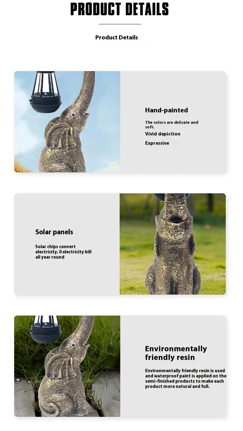 The Stone Elephant Resin Atmosphere Lantern Ornament is the perfect way to bring light, positive energy, and tranquility into your home or garden. With its beautiful stone-like design, soothing LED light, and powerful symbolism, it serves as both a functional light source and a meaningful decorative piece. Whether for your personal space or as a thoughtful gift for someone special, this elephant lantern is sure to enhance any environment with peace and elegance.