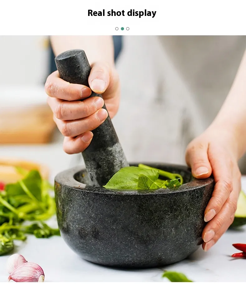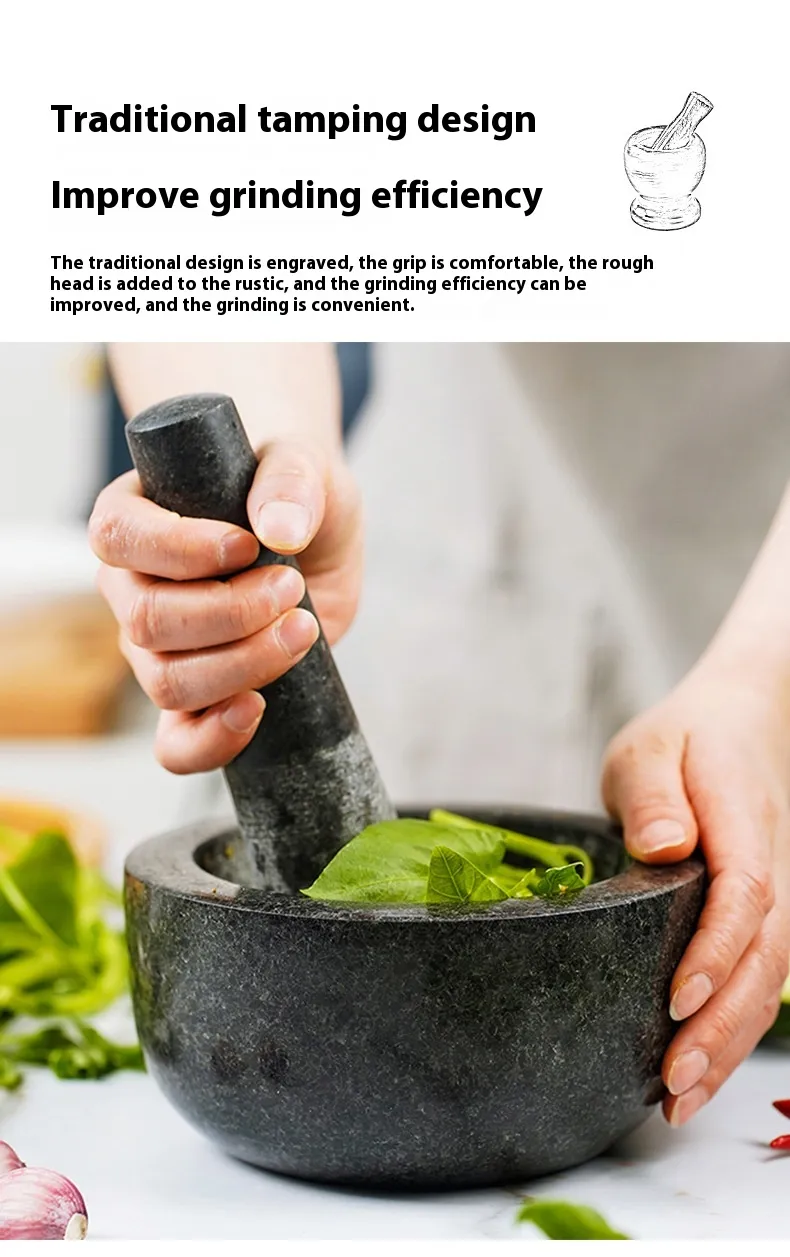 The stone mortar grinder excels in crushing and grinding a wide range of ingredients, especially spices, herbs, and pastes. Whether you're grinding freshly picked basil for pesto, preparing garlic and ginger for a curry, or mixing spices for your favorite marinade, this tool provides superior control and results compared to modern electric grinders. The rough texture of the stone allows for thorough grinding, unlocking the true flavors of your ingredients.