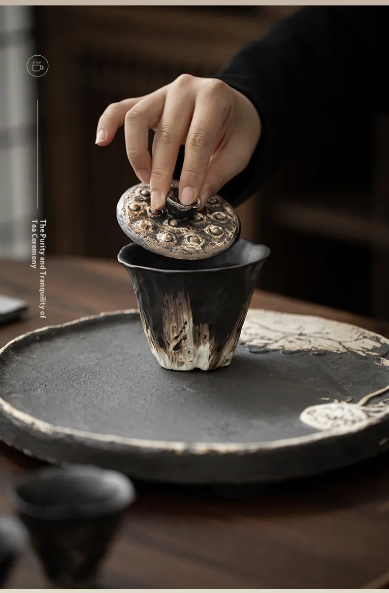 The hand-embossed patterns on the bowl's surface are inspired by nature and traditional motifs, adding an artistic touch to its functional design. The smooth glaze finish not only enhances the visual appeal but also makes cleaning effortless. The substantial size and weight of the bowl provide a satisfying tactile experience, making each tea session more enjoyable.