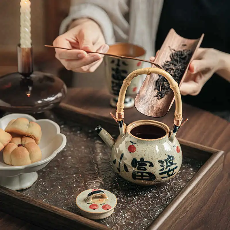Stoneware Loop-handled Teapot Women's One-person Small Pot Teapot Tea Set