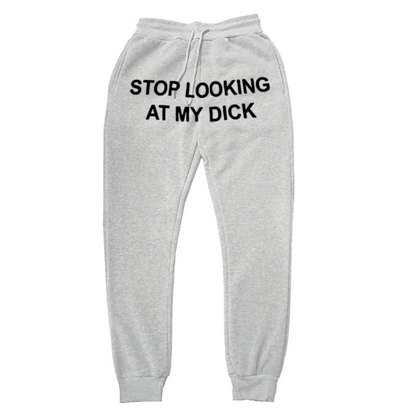 stop looking at my dick pants are designed with an elasticized waistband and cuffed ankles to provide a secure fit. The waistband can be adjusted with a drawstring, giving you the freedom to tighten or loosen as needed. The cuffed ankles add a touch of modernity to the classic sweatpants style, providing a tailored look that highlights your shoes or sneakers. This design also helps keep the pants in place during physical activity or casual wear.